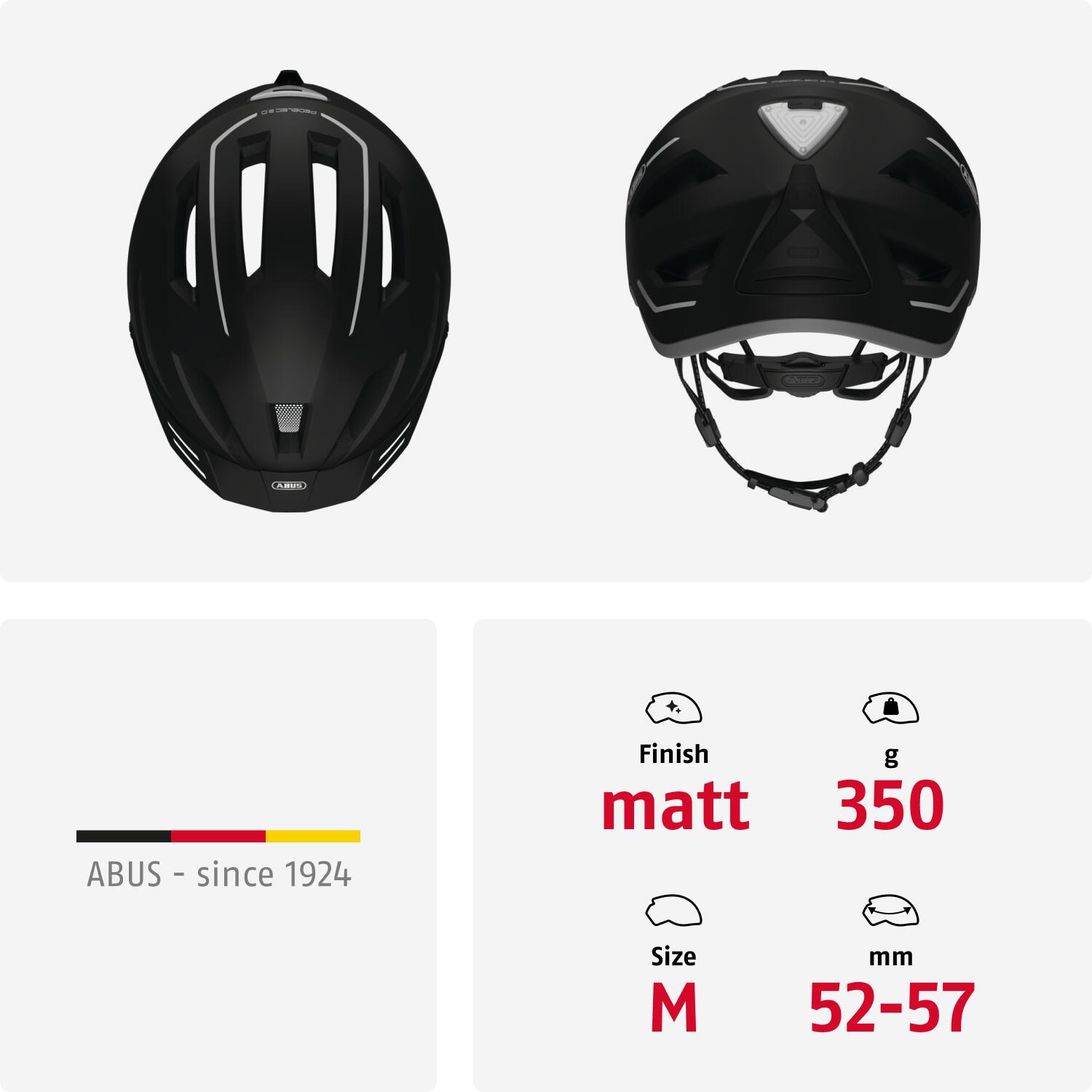 Ride safely with the Abus Pedelec 2.0 bike helmet: lightweight, ventilated, and equipped with an LED light for optimum visibility.