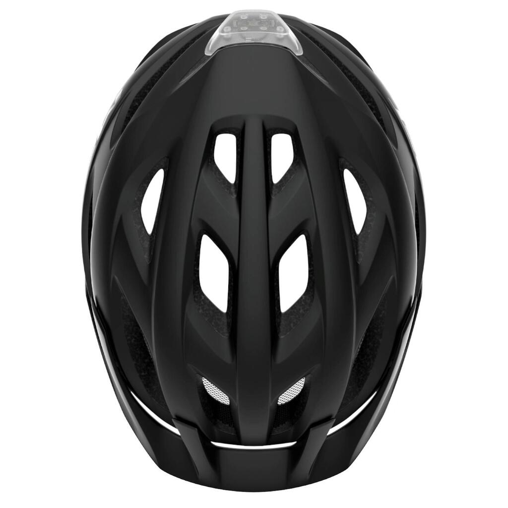 Versatile urban-to-trail helmet with removable visor and built-in rear LED light