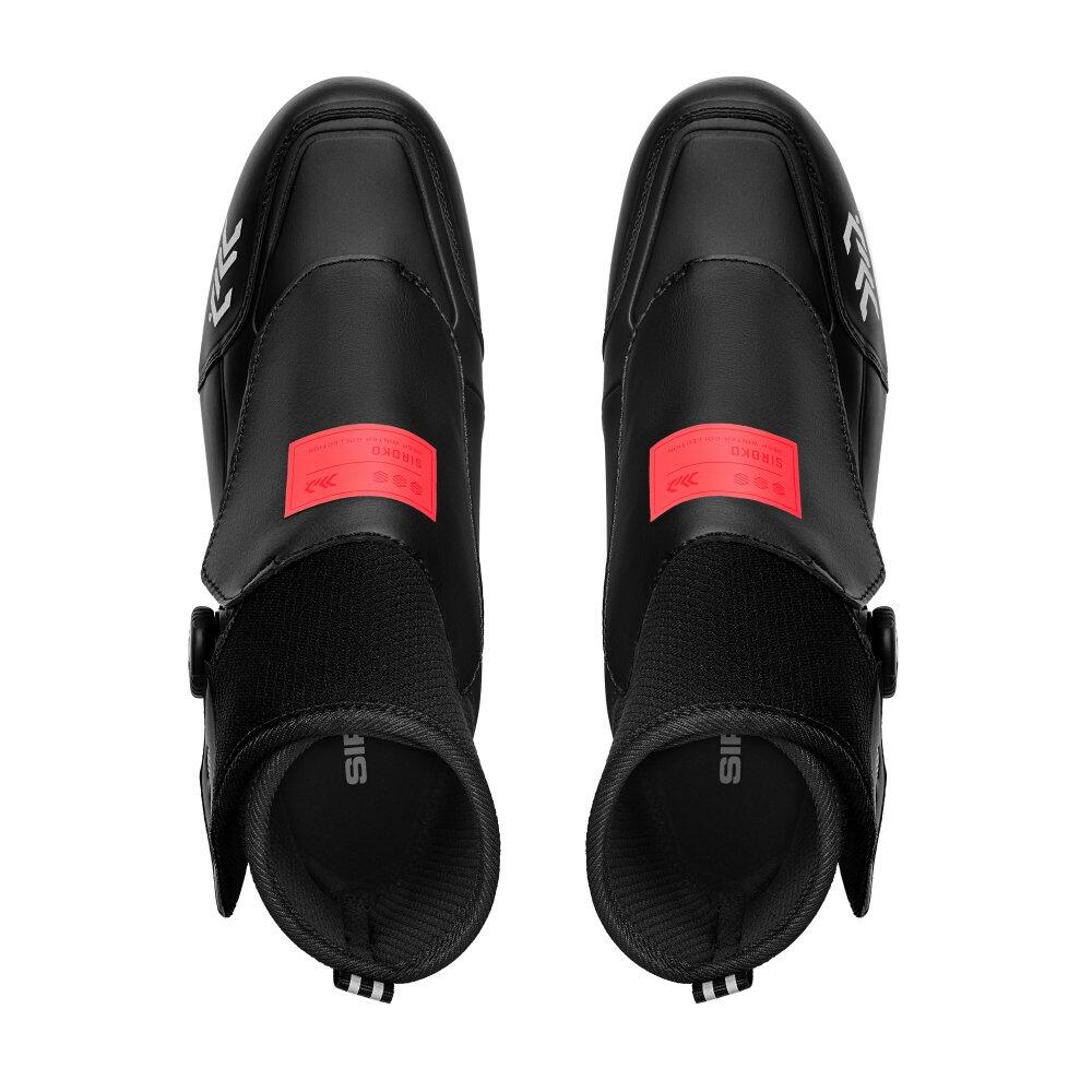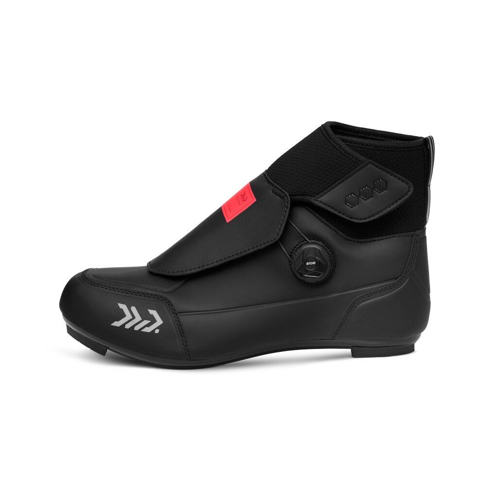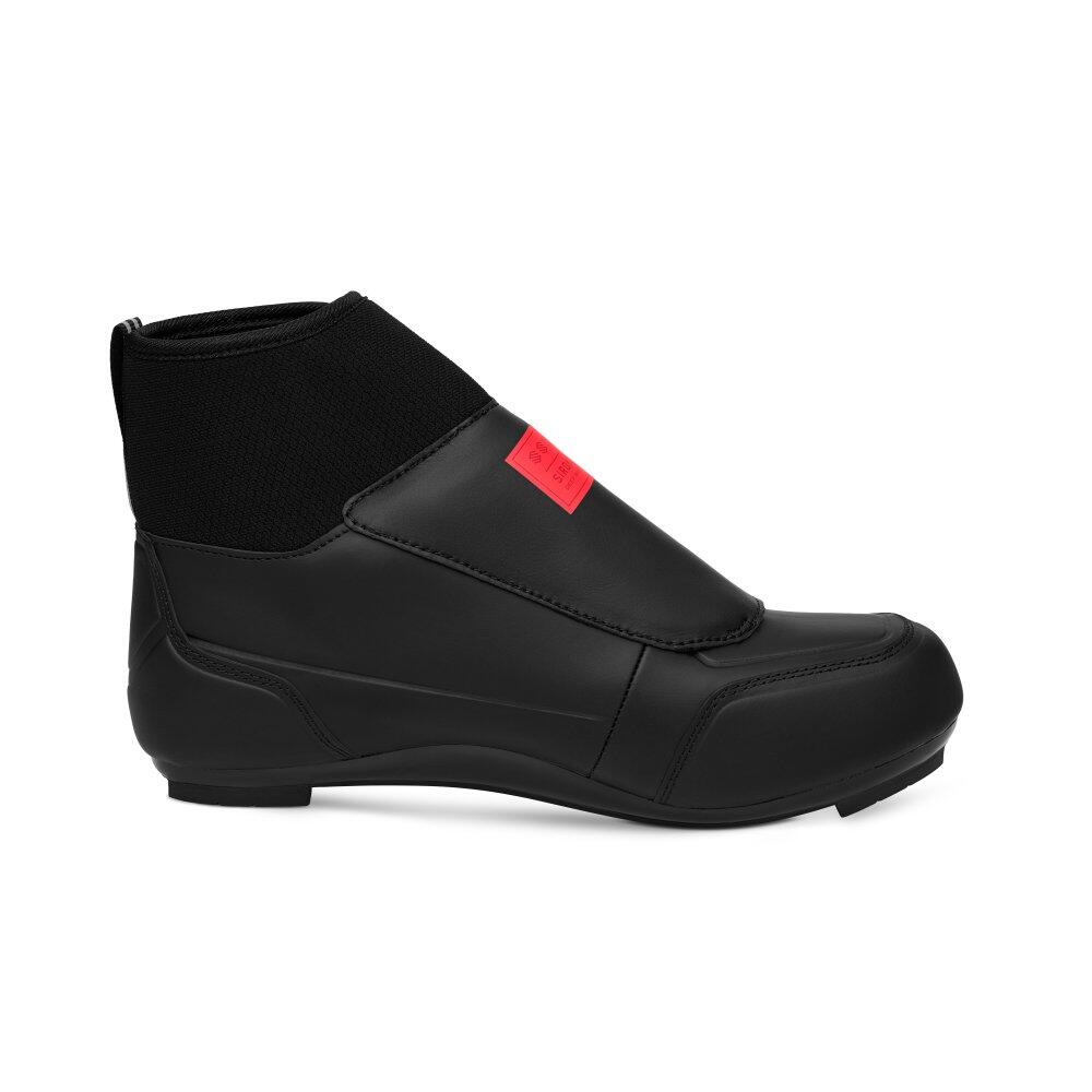 Road cycling footwear designed to withstand harsh winters. With inner fleece lining, neoprene ankle collar and high-performance EVA insoles. ATOP dial system with lace flap. Compatible with 3-bolt cle