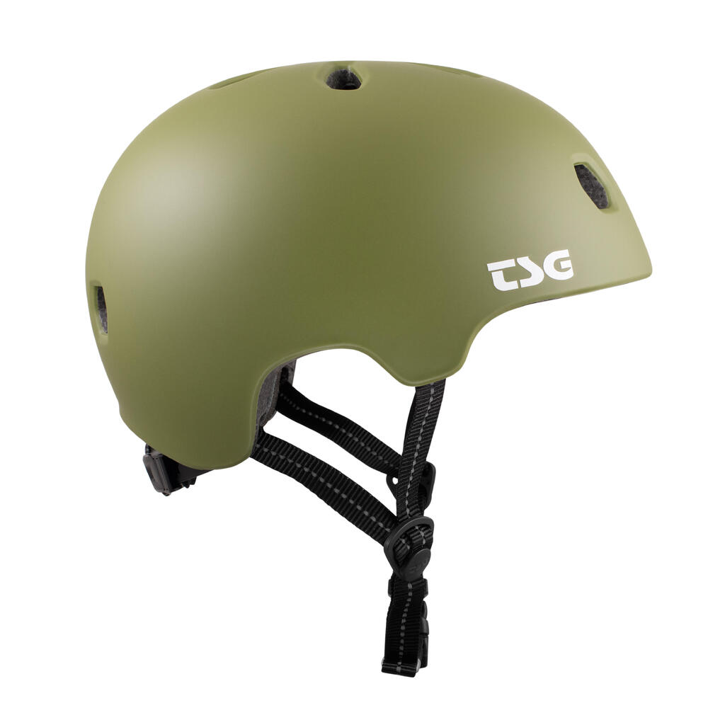 The TSG Helmet Meta Solid Color Satin Olive offers optimal protection with a stylish design. Lightweight and adjustable, it's perfect for urban sports enthusiasts.