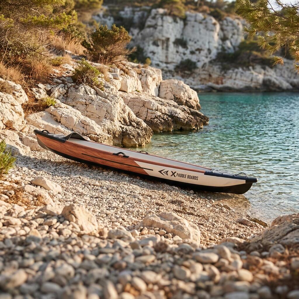 Enjoy the best of both worlds with our inflatable drop-stitch kayak: the rigidity of a hardshell kayak combined with the ease of use of an inflatable model.