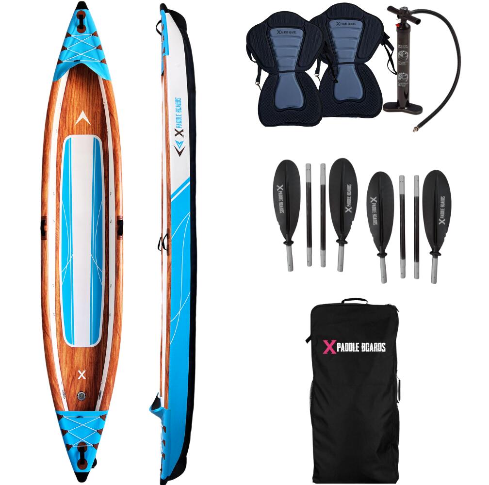 The K-Blue 2-Person kayak is a model we developed using all our stand-up paddle expertise. We wanted to offer a high-end, performant, durable, and stunning kayak.