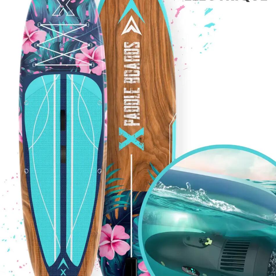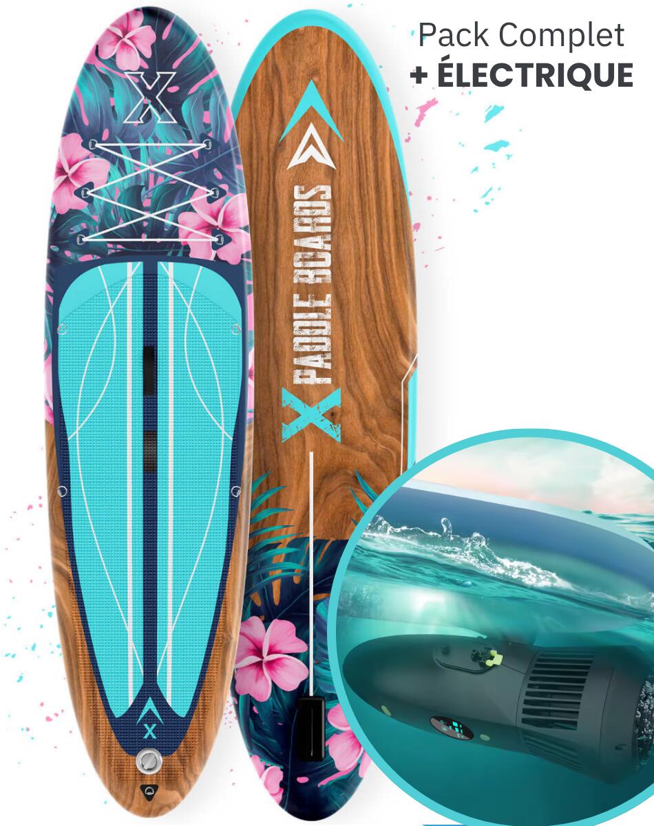 Thanks to its compact size and removable structure, our underwater propulsion system allows you to transform your X PaddleBoards stand-up paddle into an electric SUP.