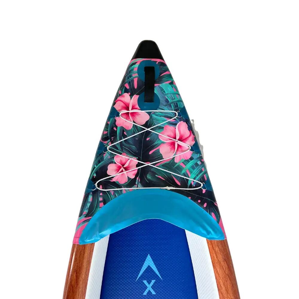 With a length of 366 cm and a width of 75 cm, the K-Hawaii offers a comfortable space, even solo, with enough room to carry bags, picnic items, or other accessories. Its raised edges keep you dry. It has excellent buoyancy and can support up to 120 kg.