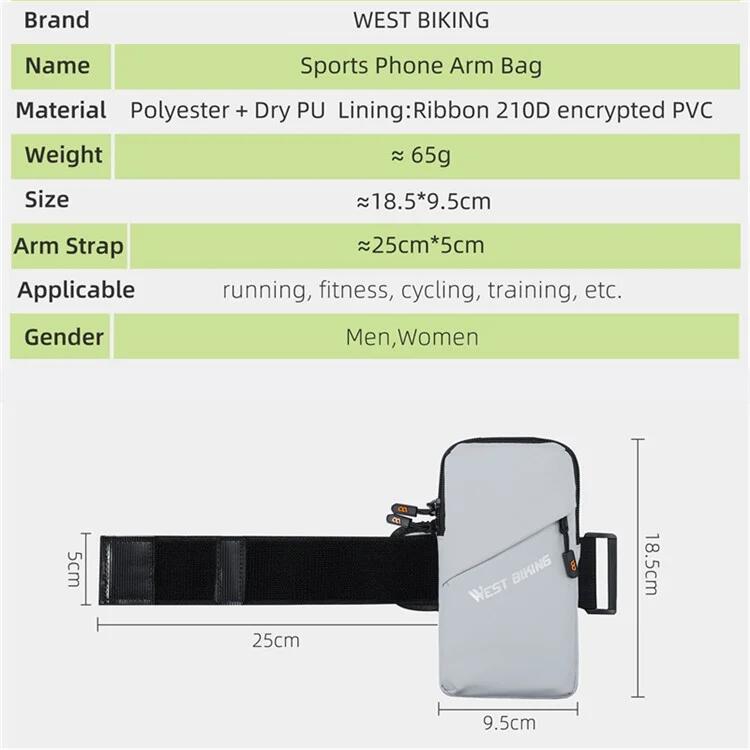 WEST BIKING YP0707365 Sports Armband for Running, Fitness, Cycling - Phone Pouch Made of water-repellent fabric, effectively prevents rain and sweat from penetrating. Ultra-thin and lightweight, breathable and comfortable. Allows for easy storage of mobile phones during exercise. Features: Material: Polyester + PU, 210D lining, PVC Weight: Approx. 65g Bag Size: Approx. 18.5*9.5cm Armband Size: Approx. 25cm*5cm Gender: Unisex Applicable Scenarios: Running, Fitness, Cycling, Training Compatibility: Universal Package Contents: 1 x Phone Armband Other items not included