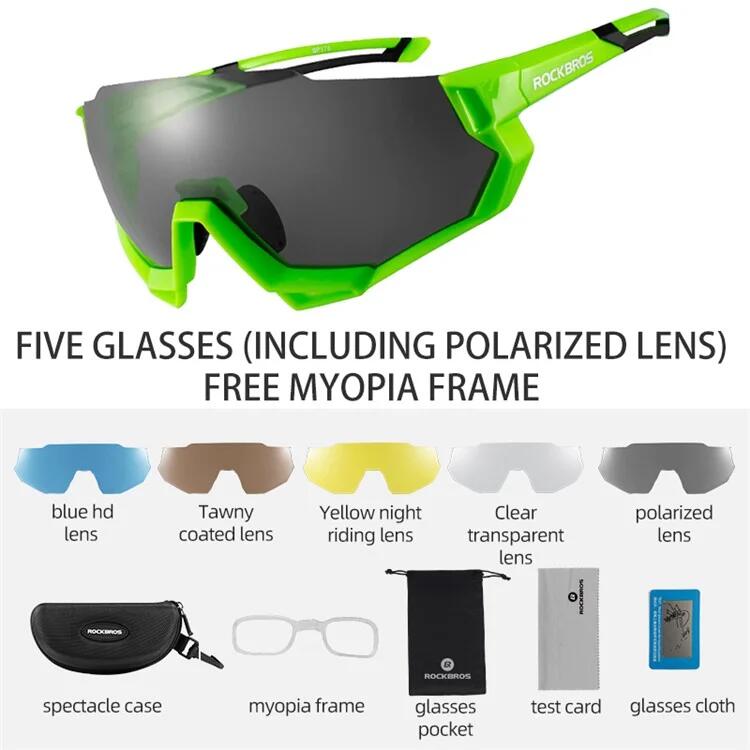ROCKBROS 10133 Polarized Photochromic Sunglasses for Cycling, Windproof, Sandproof, with Myopia Correction The polarized lenses effectively filter out harmful light, reduce glare, and combat eye strain. The polarized photochromic lenses change color in sunlight, creating a cool and stylish look. The ultra-lightweight frame won't weigh down your nose, allowing you to wear these sunglasses comfortably. Comes with 5 spare lenses; thanks to the quick-change lens system, you can switch lenses in a snap. Widely used for sports activities such as cycling, mountaineering, climbing, trekking, fishing, and more. Specifications: Brand: Rockbros Model: 10133 Frame Material: Acetate, TR Use: Cycling/Fishing/Climbing/Driving Lens Material: PC Gender: Men/Women Lens Material: PC Lens Color: Photochromic Frame Color: Black/Blue/Red Service: OEM/ODM Package Includes: 1 x Sunglasses Case 1 x Concave Lens Frame 1 x Sunglasses 1 x Cleaning Cloth 1 x Test Card