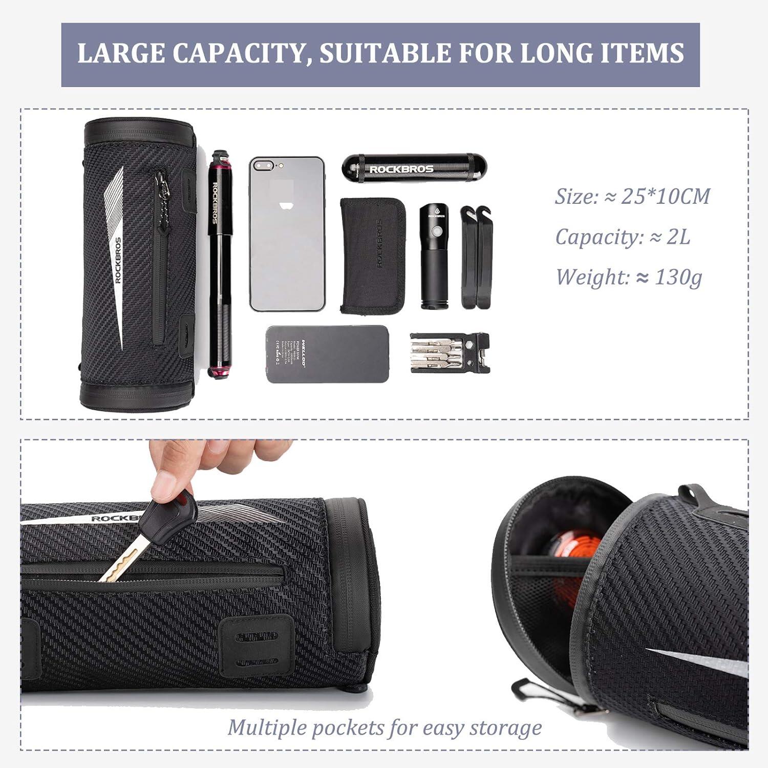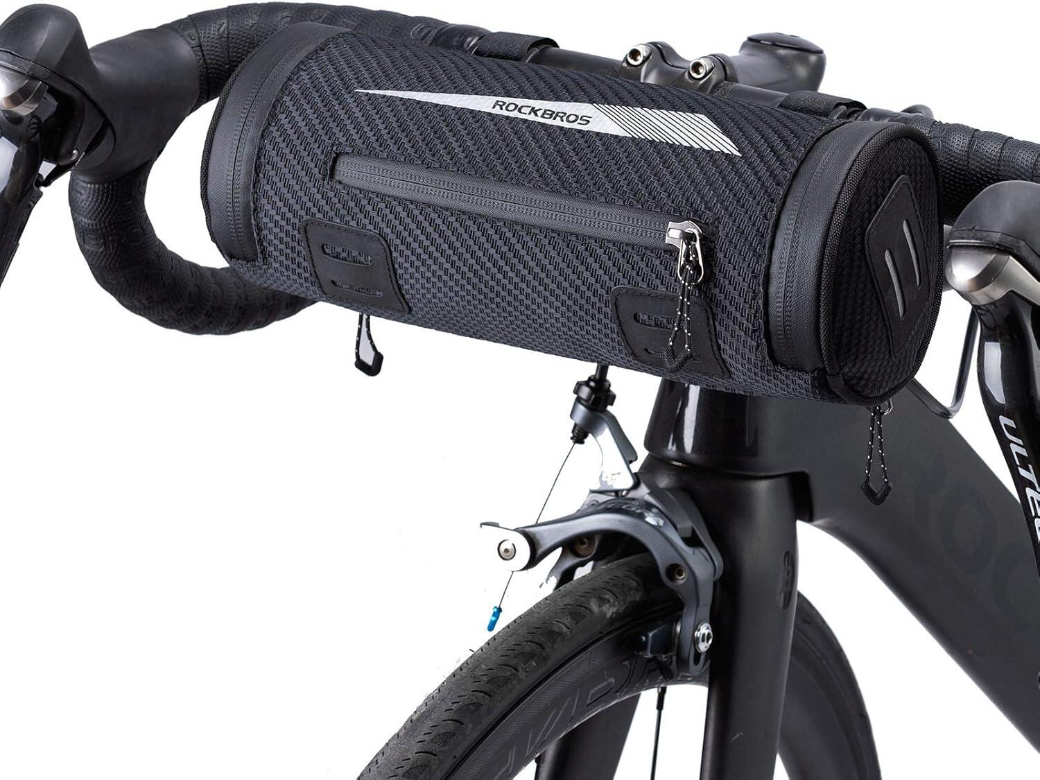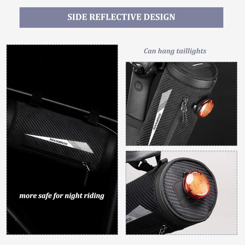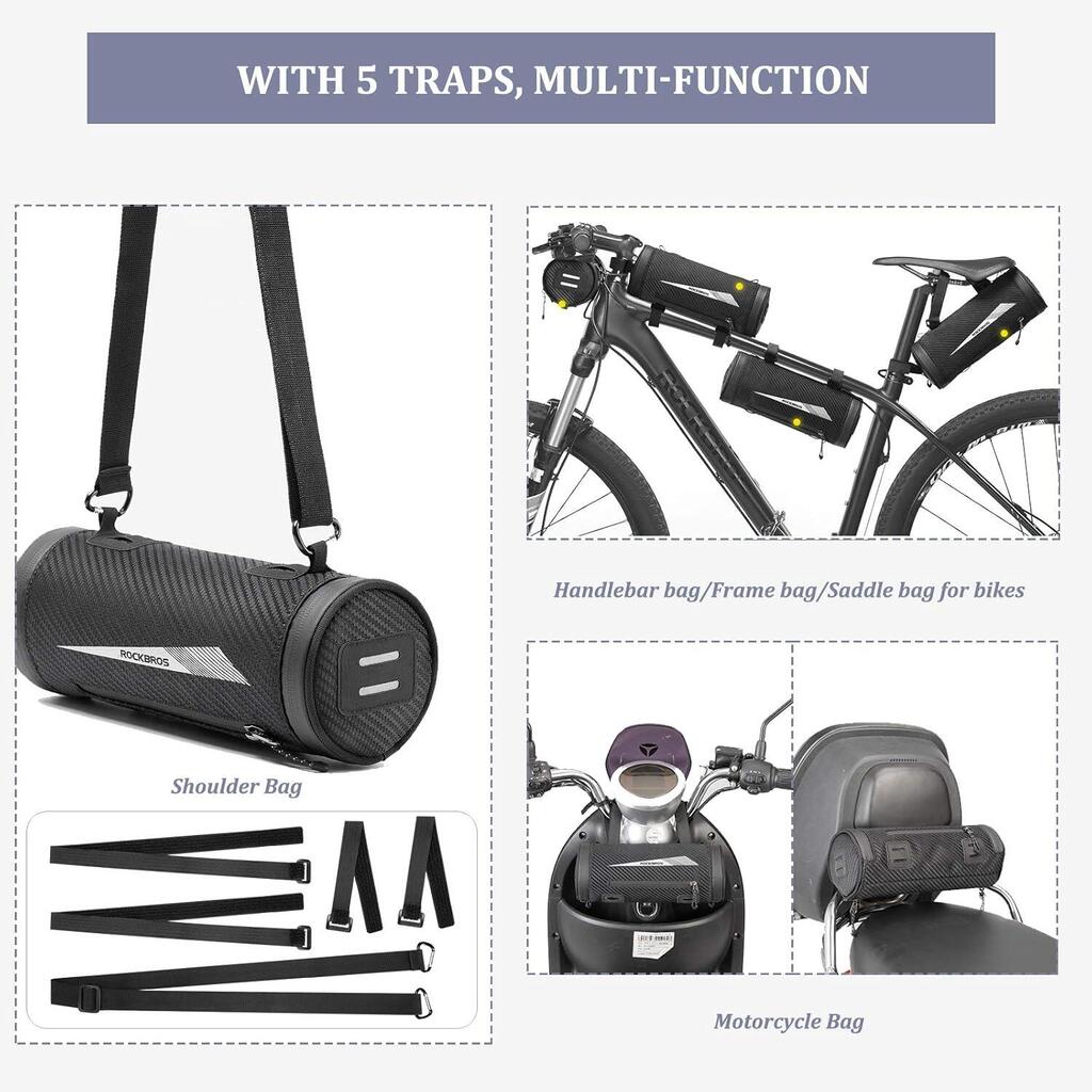 ROCKBROS 2 L handlebar bag in Nylon 900D with 5 adjustable straps, shoulder strap and reflective strips, ideal for city bikes and mountain bikes.