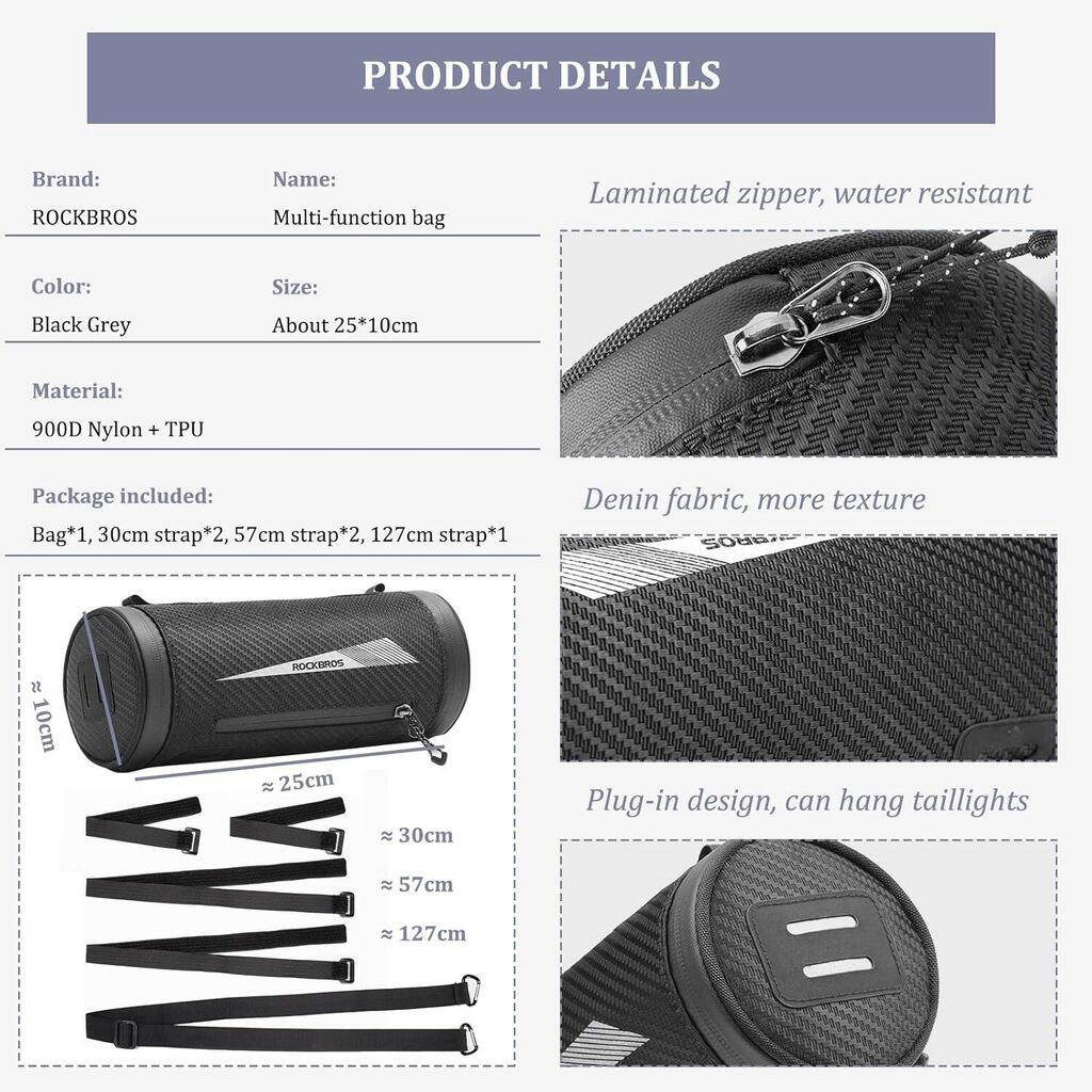 ROCKBROS Handlebar Bag 2 L Black Nylon 900D with 5 Straps