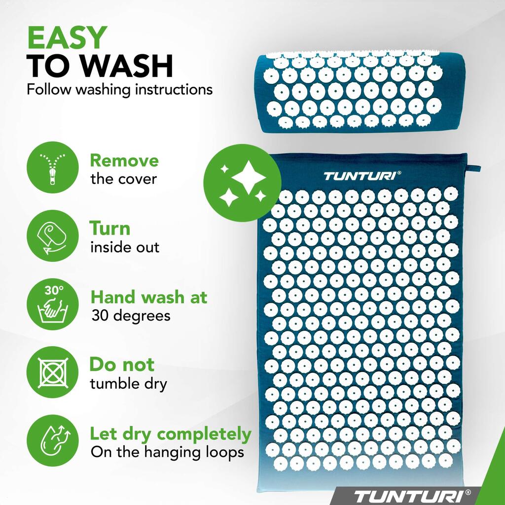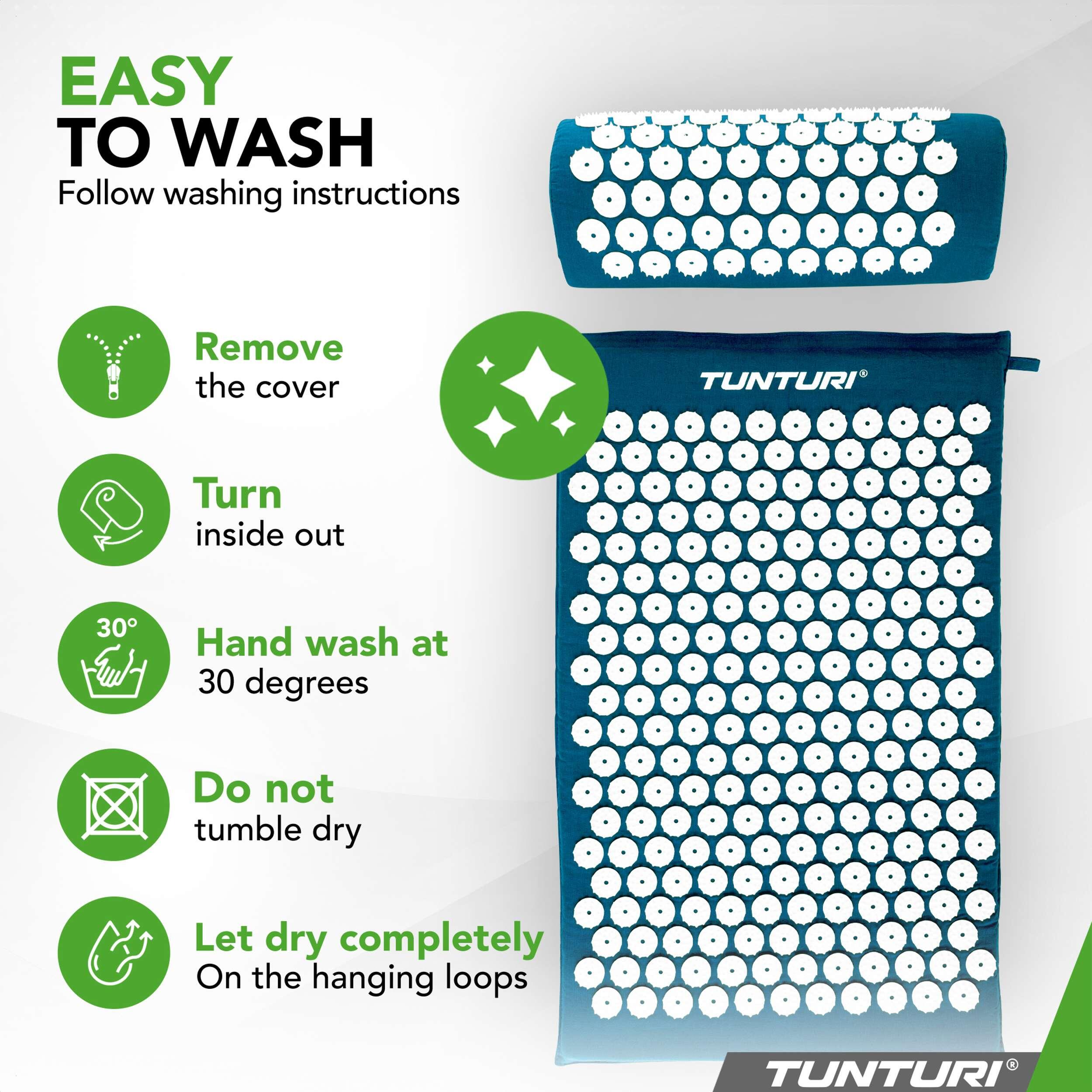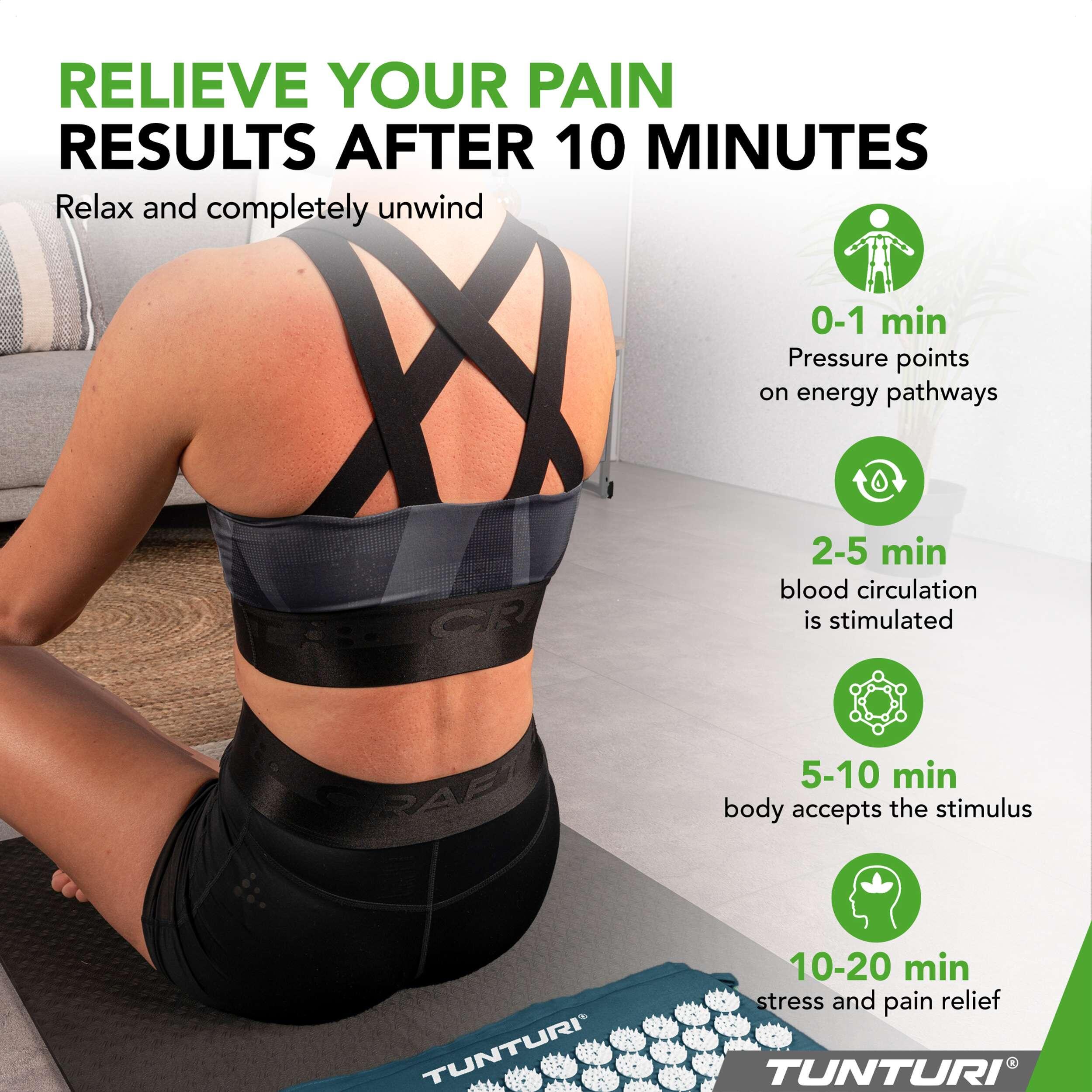 Tunturi Acupressure Mat with Pillow: Reduces pain and stress, improves circulation, sleep, and energy. Just 10 minutes a day for results. Skin-friendly cotton, washable covers. Includes carrying bag.