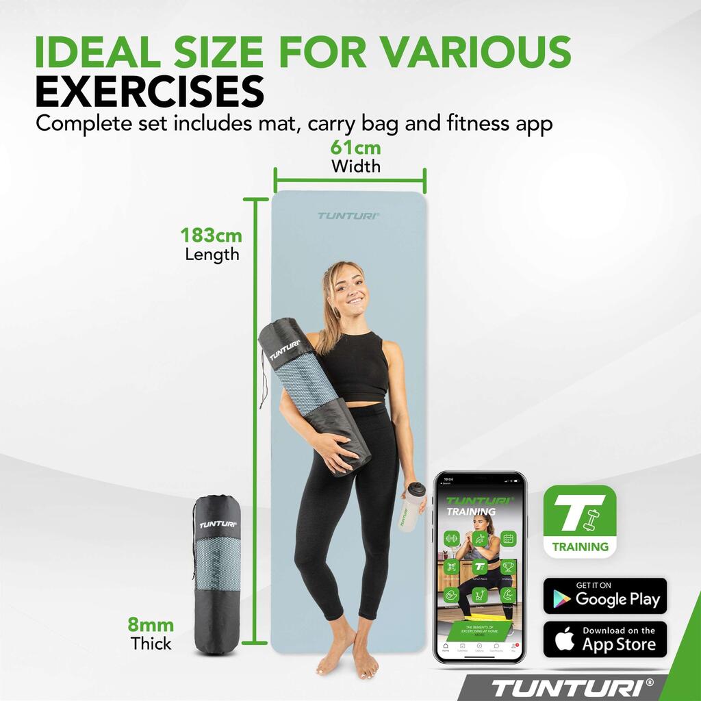 Train with optimal comfort and grip with the Tunturi Yoga Mat 8mm. Extra thick and suitable for yoga, fitness, and Pilates. Reduces strain on joints and easy to clean.