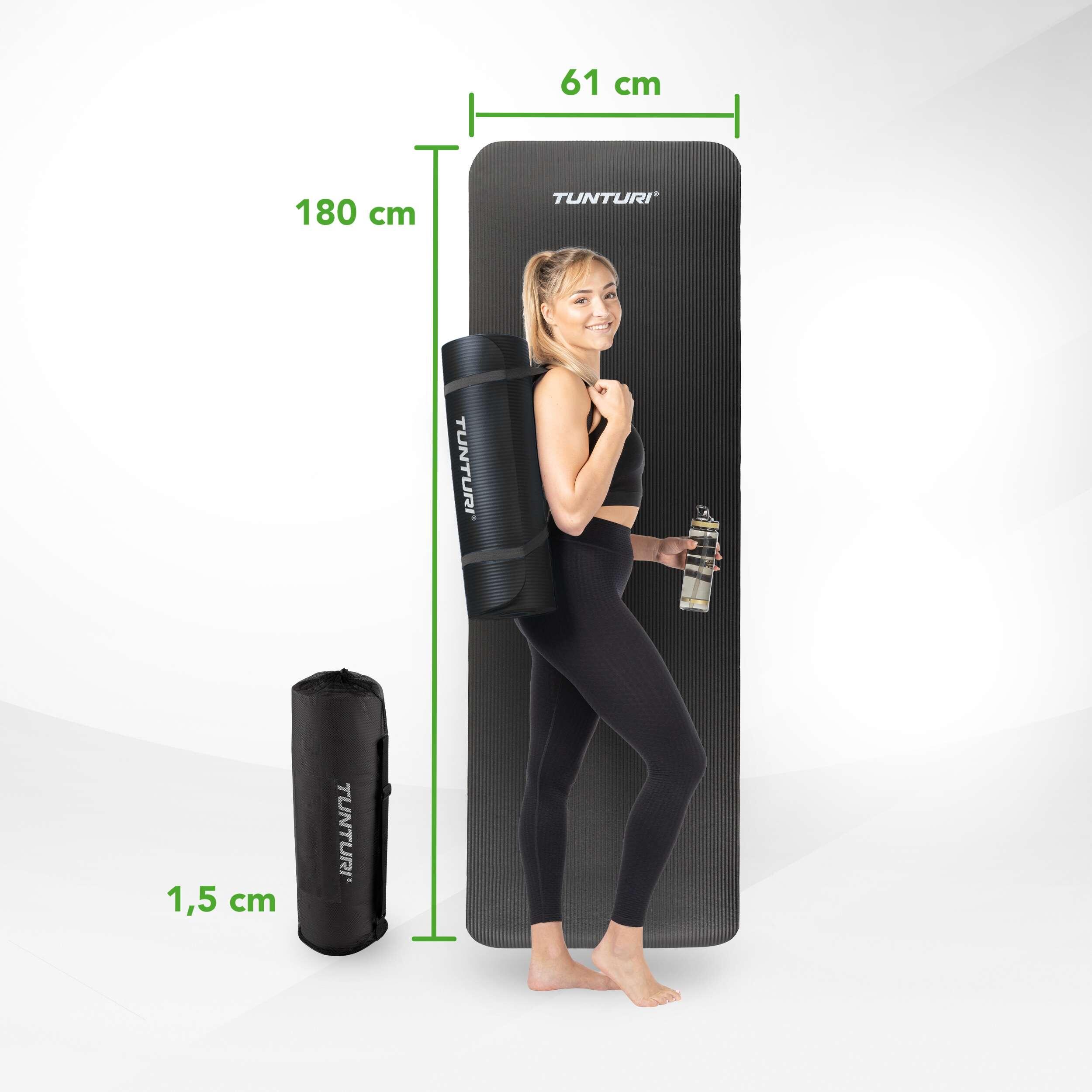 Upgrade your training with the Tunturi fitness mat, 1.5 cm thick, high-quality NBR material, luxurious comfort, and always easy to roll up. This mat is indispensable for your fitness workouts.