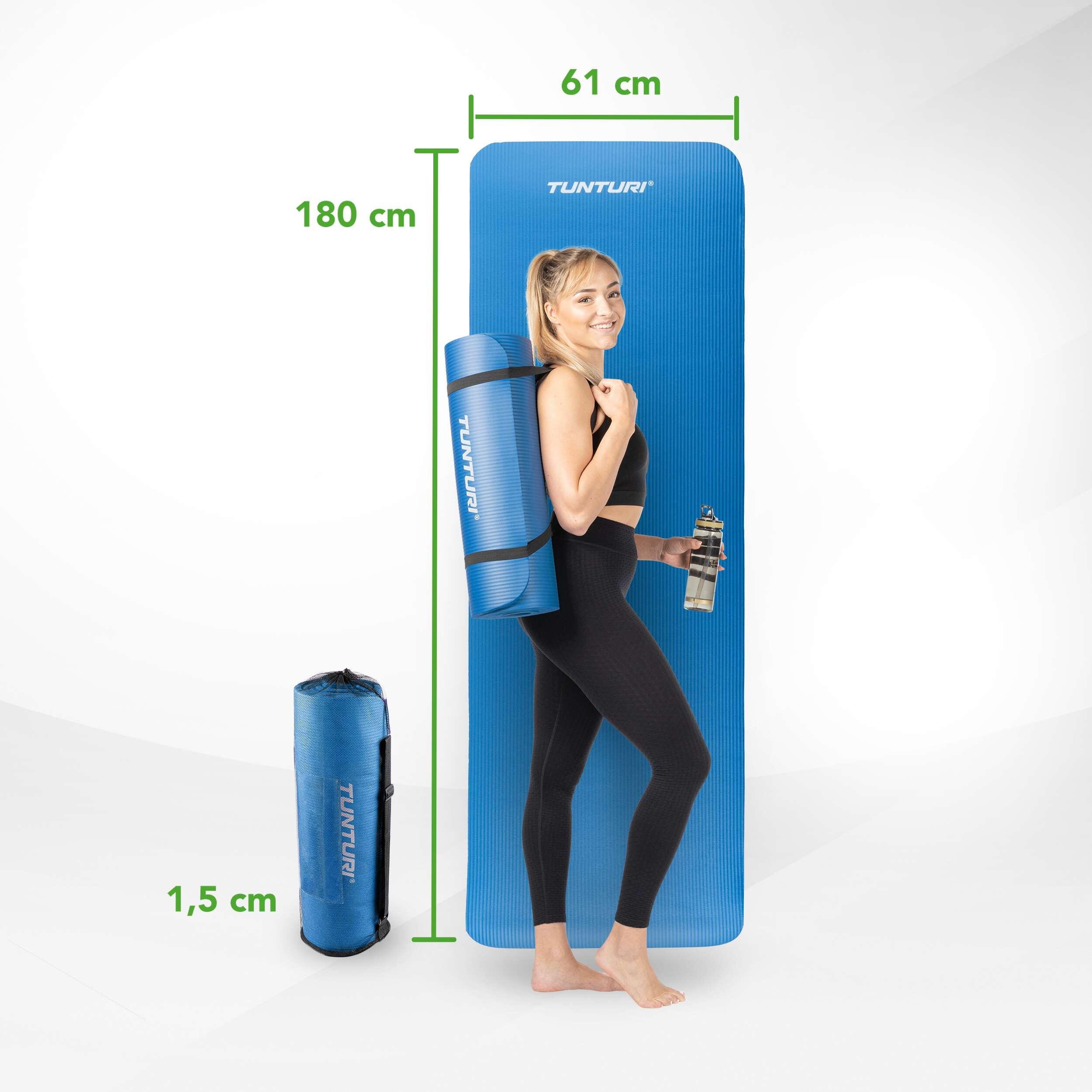 Upgrade your training with the Tunturi fitness mat, 1.5 cm thick, high-quality NBR material, luxurious comfort, and always easy to roll up. This mat is indispensable for your fitness workouts.
