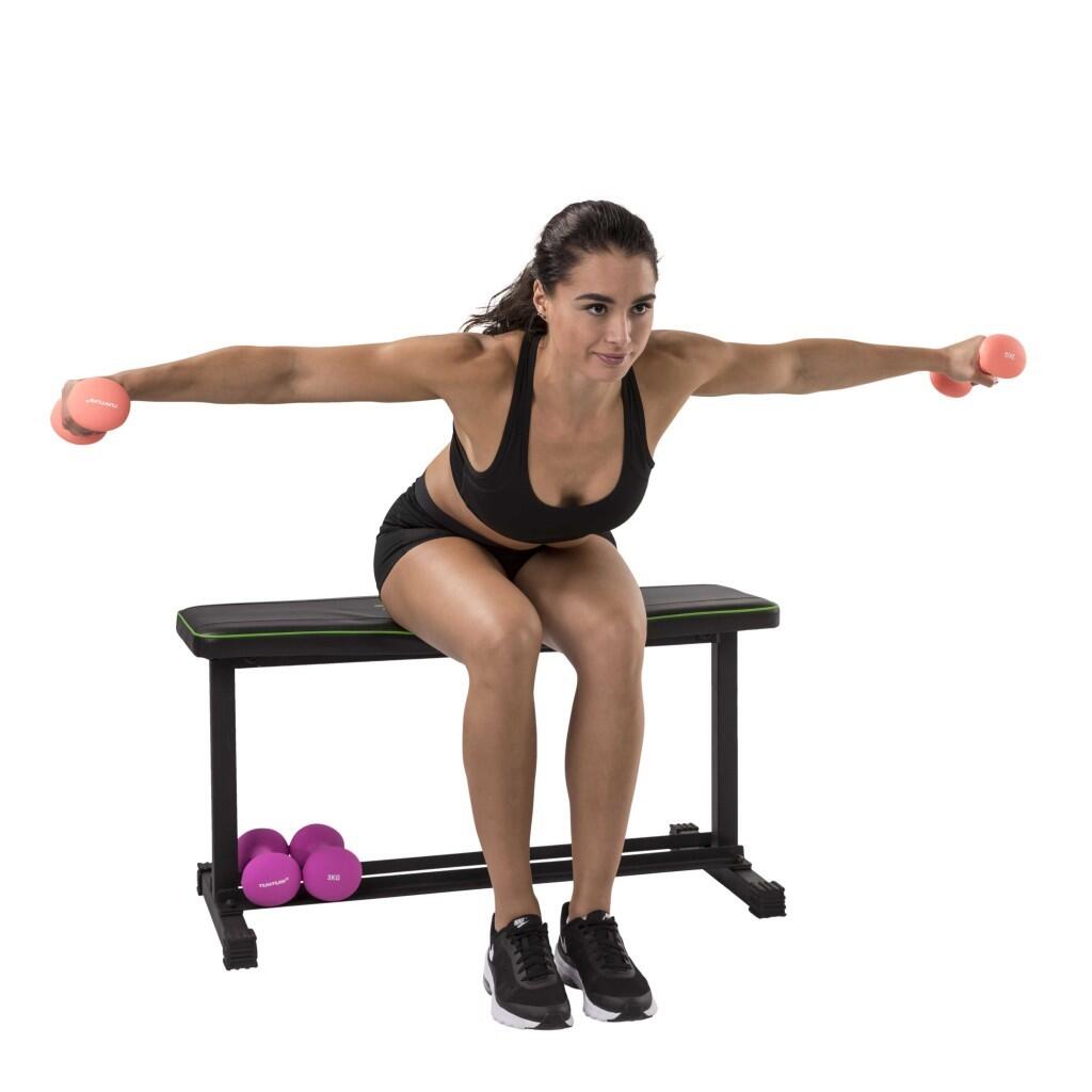 Do you often train with dumbbells or other weights? Then this training bench will become your regular partner. The Flat bench is a sturdy weight bench that provides the necessary support for all your