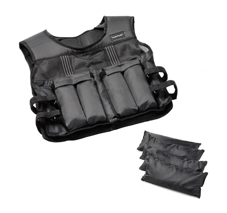 Challenge yourself even more and make your workout a bit heavier! With the Tunturi Weight Vest. The 8 included pouches contain sand and each weigh 1.25 kg.