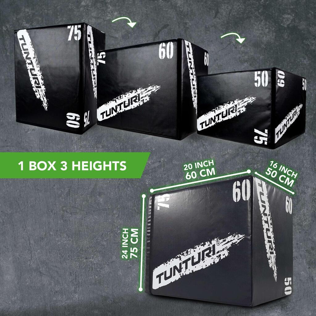 Tunturi Soft plyo box in EVA 1000D with wooden core, usable at 50/60/75 cm for plyometric training, cross-training and strength training.