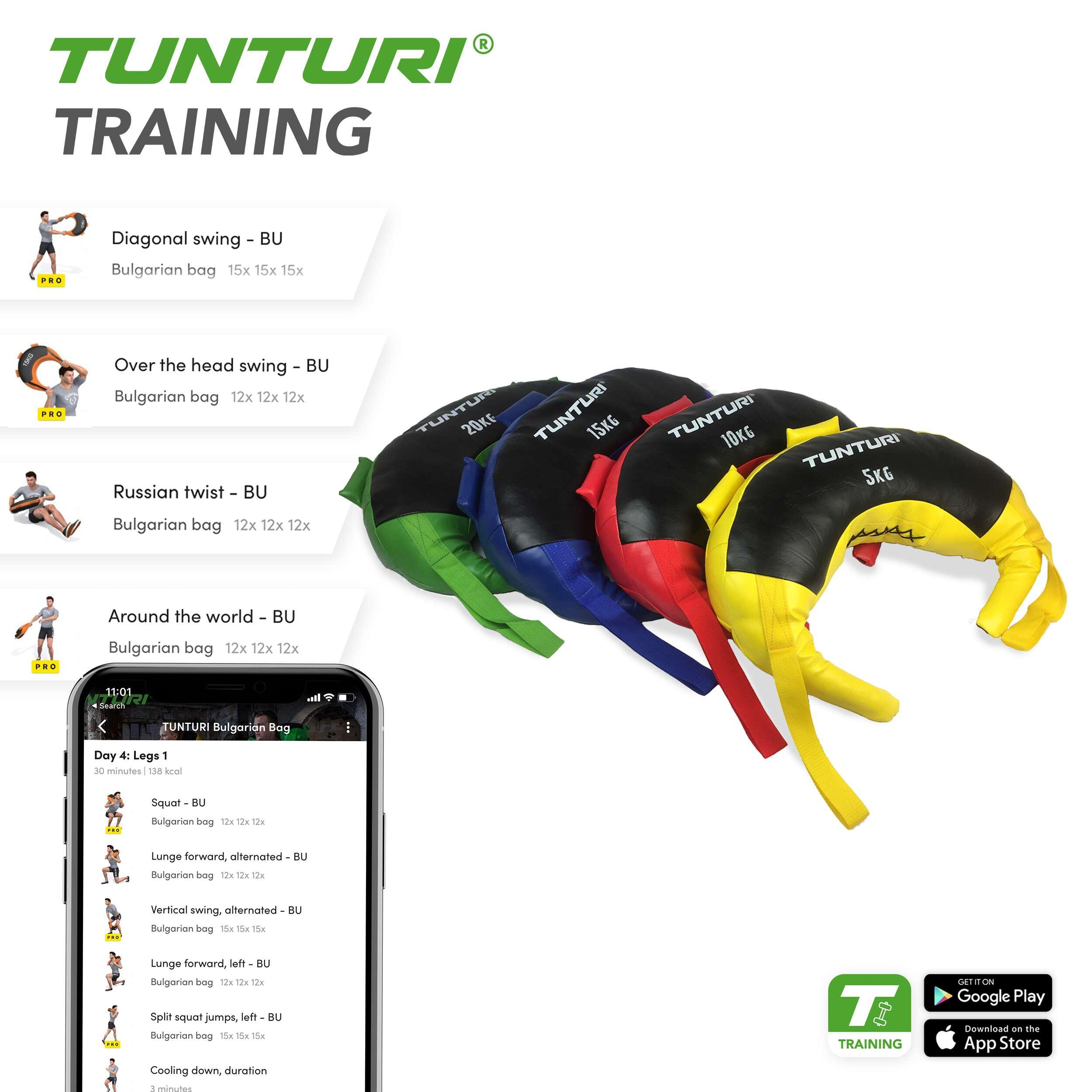 Intensify your workout with the Bulgarian Bag from Tunturi! Can be used for squats, lunges, jump squats, and much more!