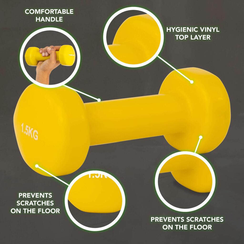 A vinyl dumbbell set that is ideal for home use! Also prevents scratches on the floor!