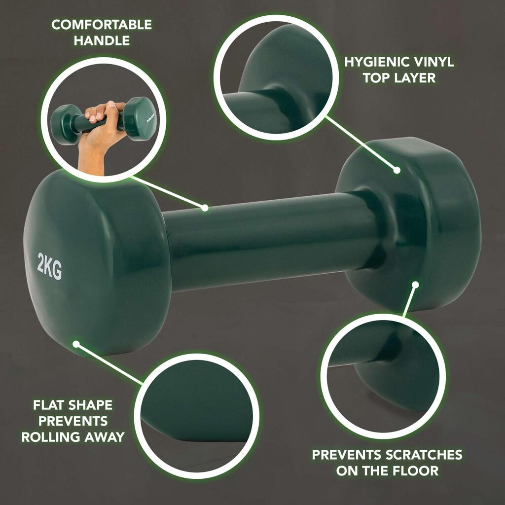 A vinyl dumbbell set that is ideal for home use! Also prevents scratches on the floor!