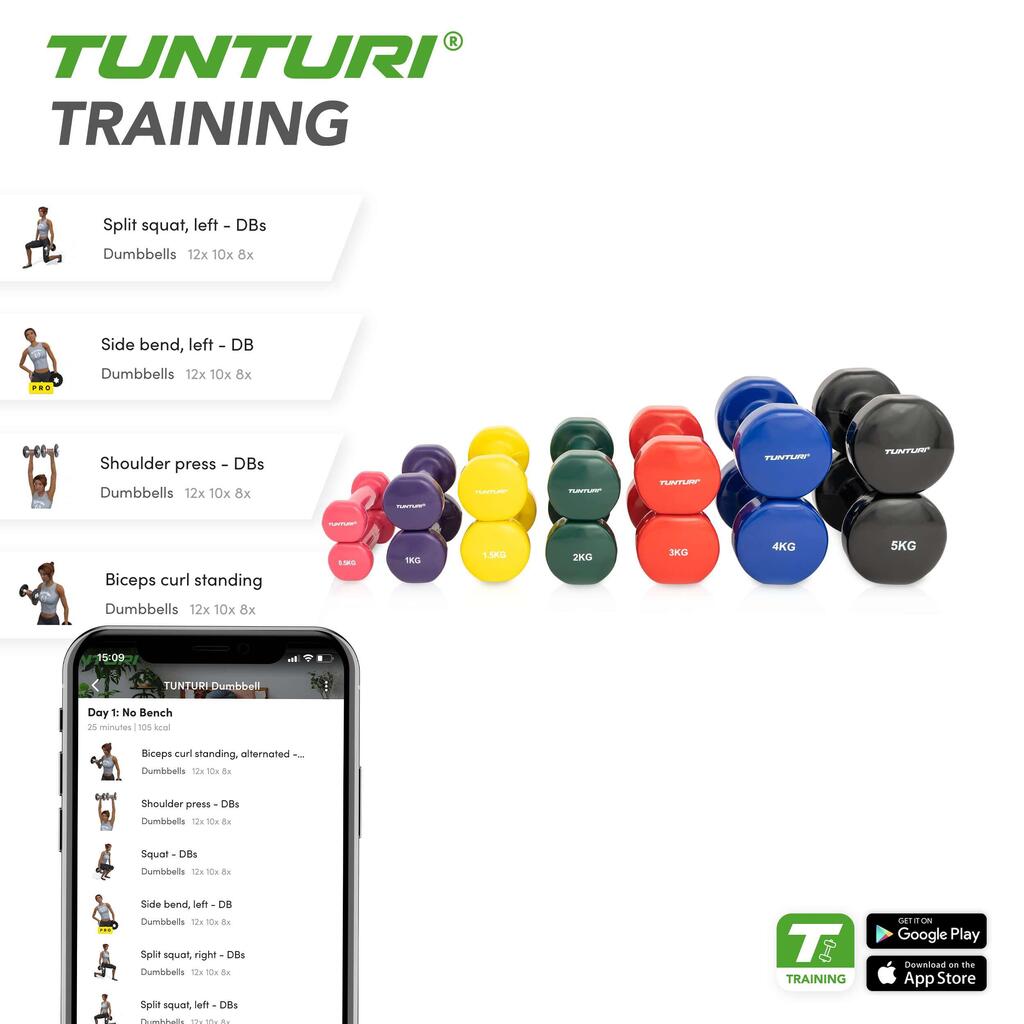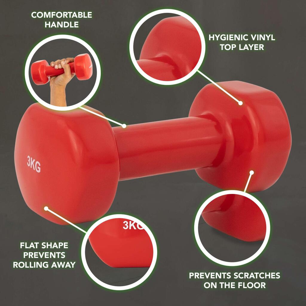 A vinyl dumbbell set that is ideal for home use! Also prevents scratches on the floor!