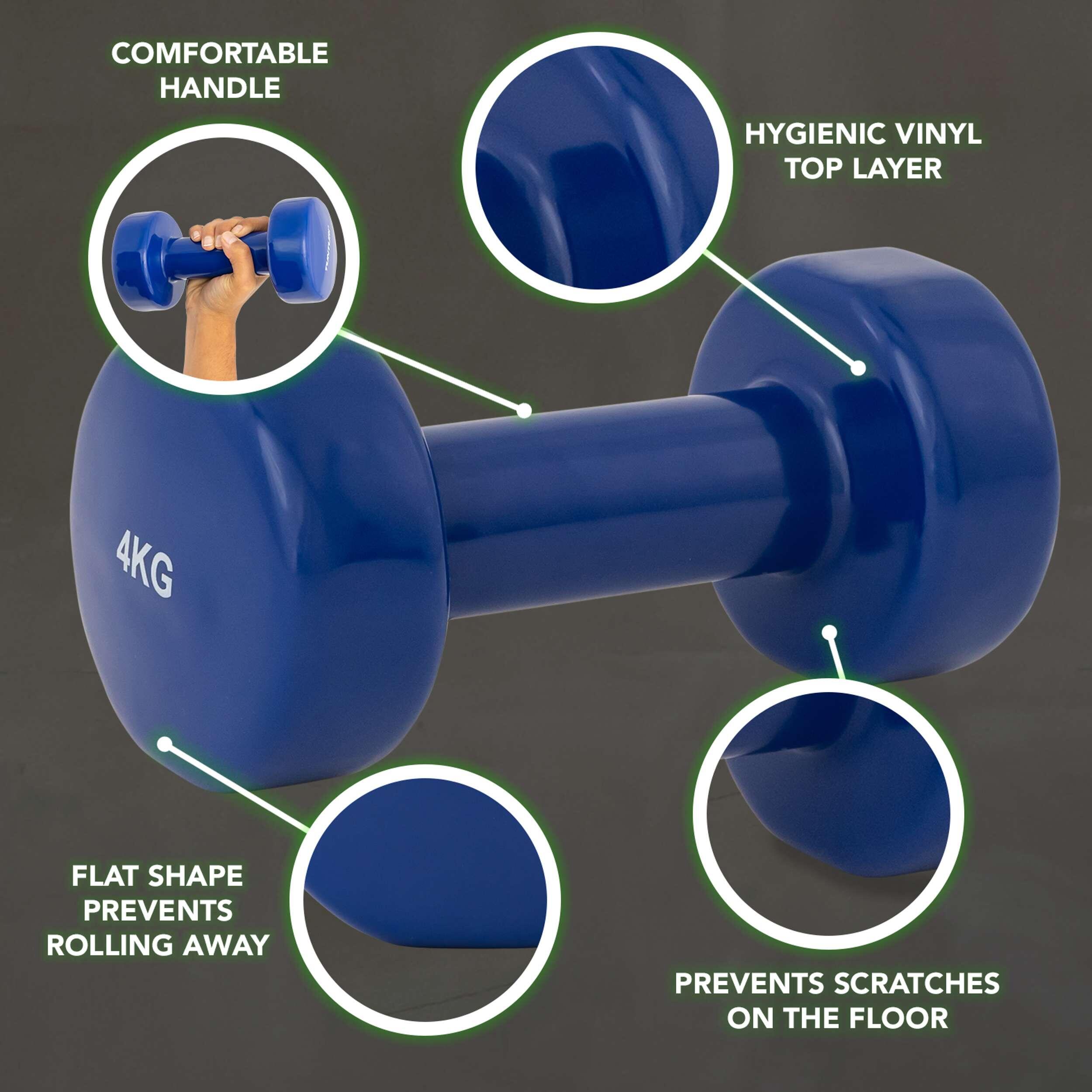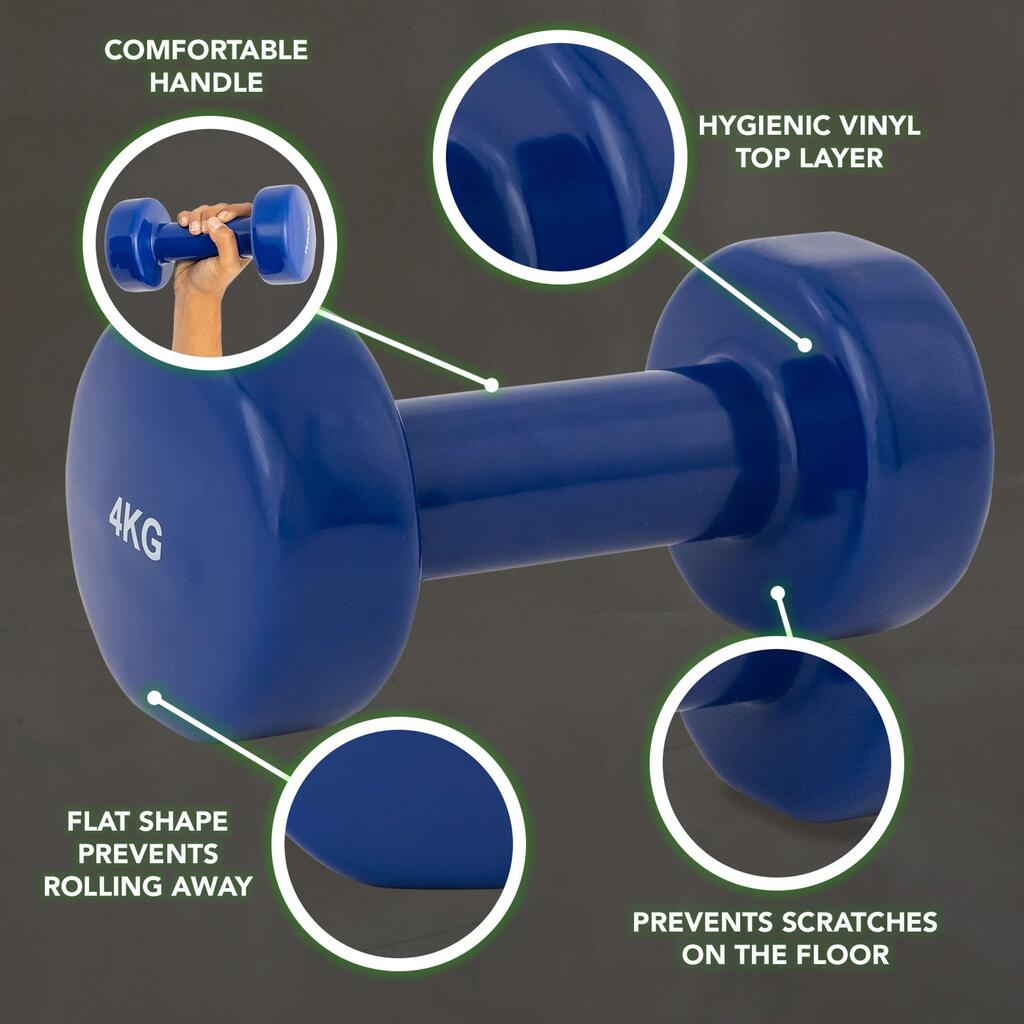 A vinyl dumbbell set that is ideal for home use! Also prevents scratches on the floor!