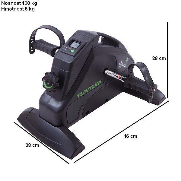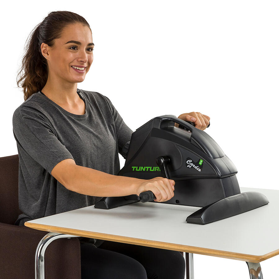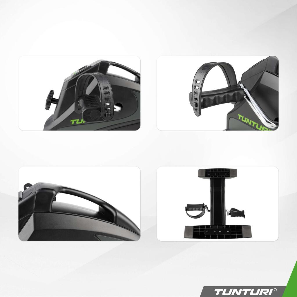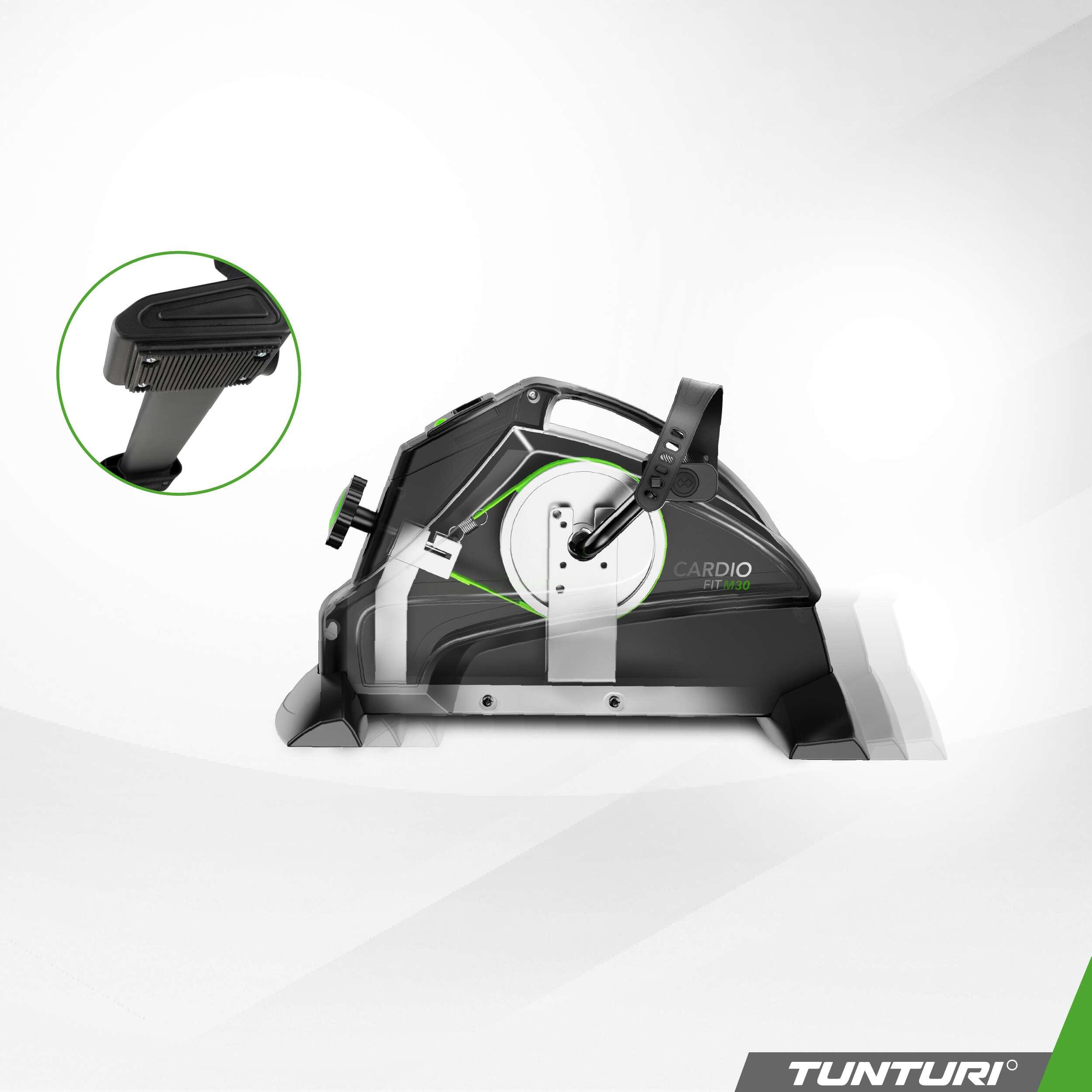 Compact, lightweight Tunturi Cardio Fit M30 mini bike for cardio training and rehabilitation, with LCD display, manual resistance and adjustable strap pedals.
