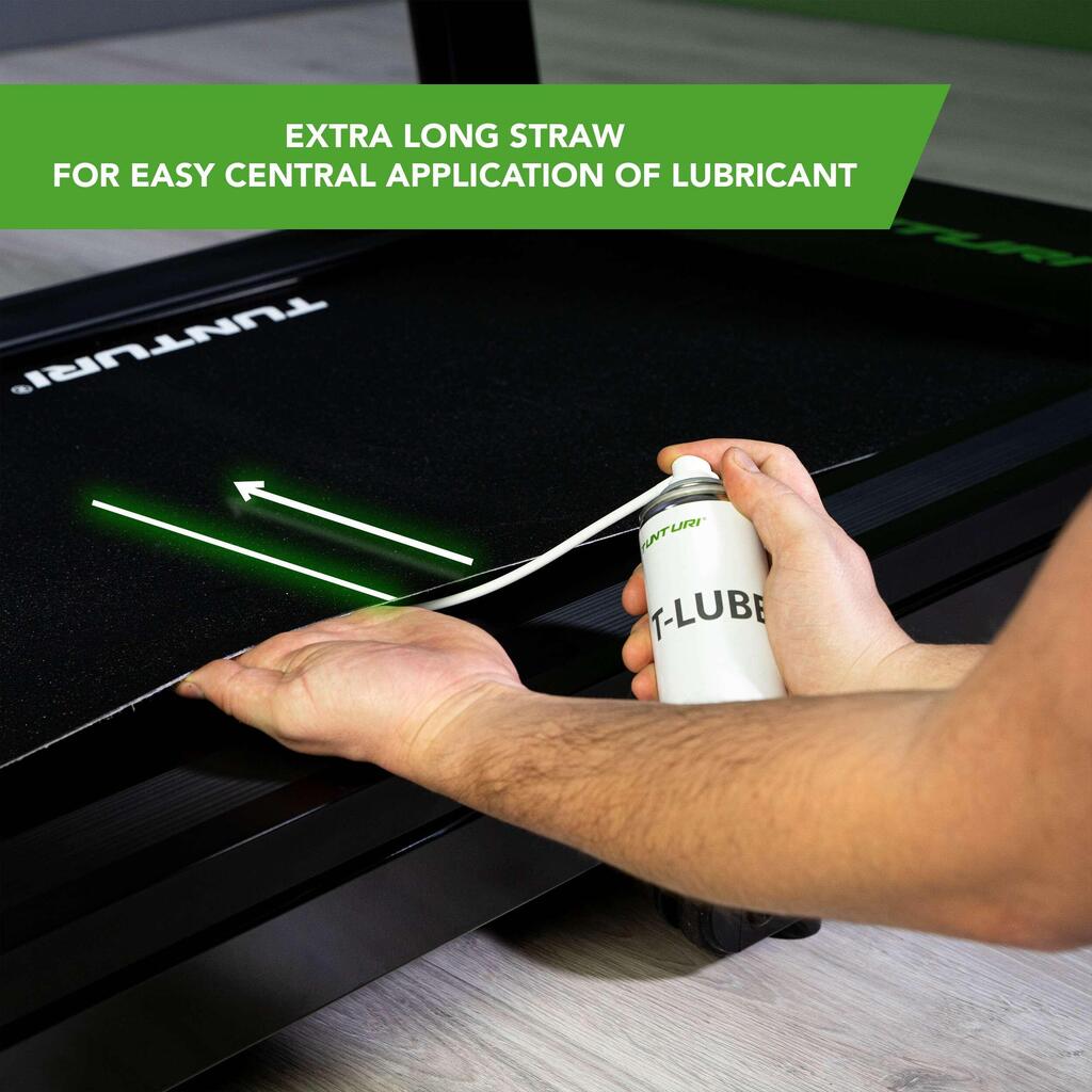 Tunturi T-Lube 200 ml Teflon spray with 40 cm applicator tube for precise lubrication of folding and non-folding treadmills.