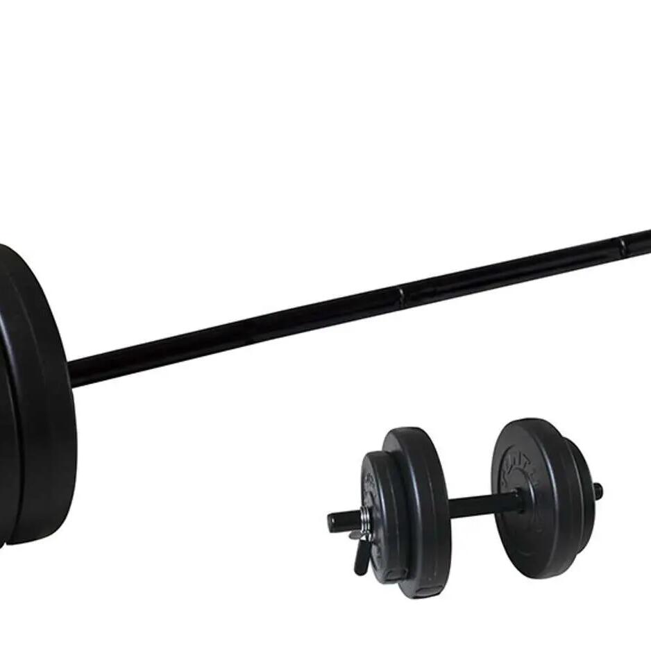Ideal for beginners. Adjustable in small weight increments and can be used for almost all exercises. This weight set can be expanded with extra weight and does not scratch due to the vinyl.