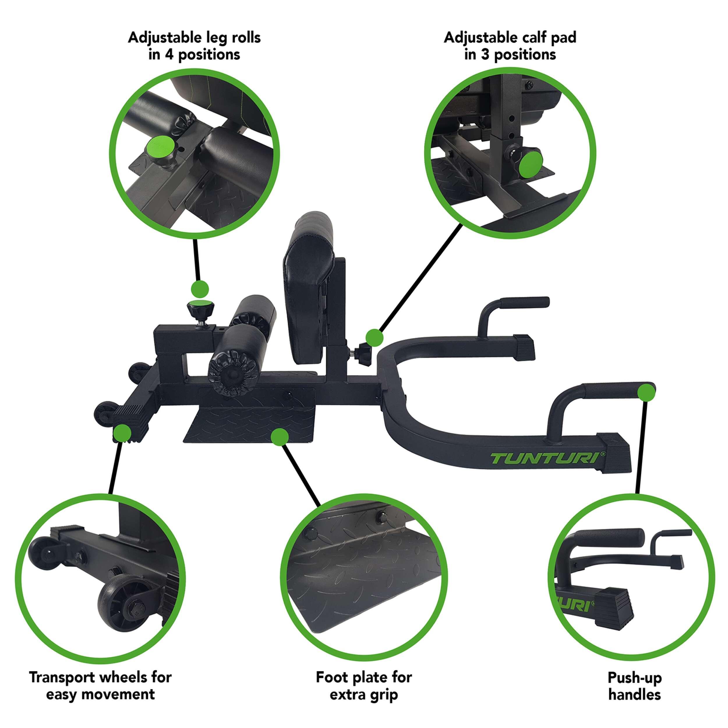 A muscular upper body should be matched with nicely muscled legs. With the WT20 Sissy Squat trainer from Tunturi, you mainly train the muscles in your glutes and thighs.