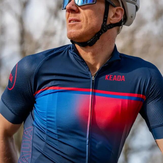 Our Jekyll Two Jersey design celebrates all that we love about cycling culture. To make this Jersey unique, we took some nice aesthetic details like the heat map chest. The sleeve is also cuffed with a three colour finish for refined detail. The Keada word-mark is featured on both arms in a signature circle and on the left breast of the jersey. The Keada crest logo is then featured at the top of the neck line.