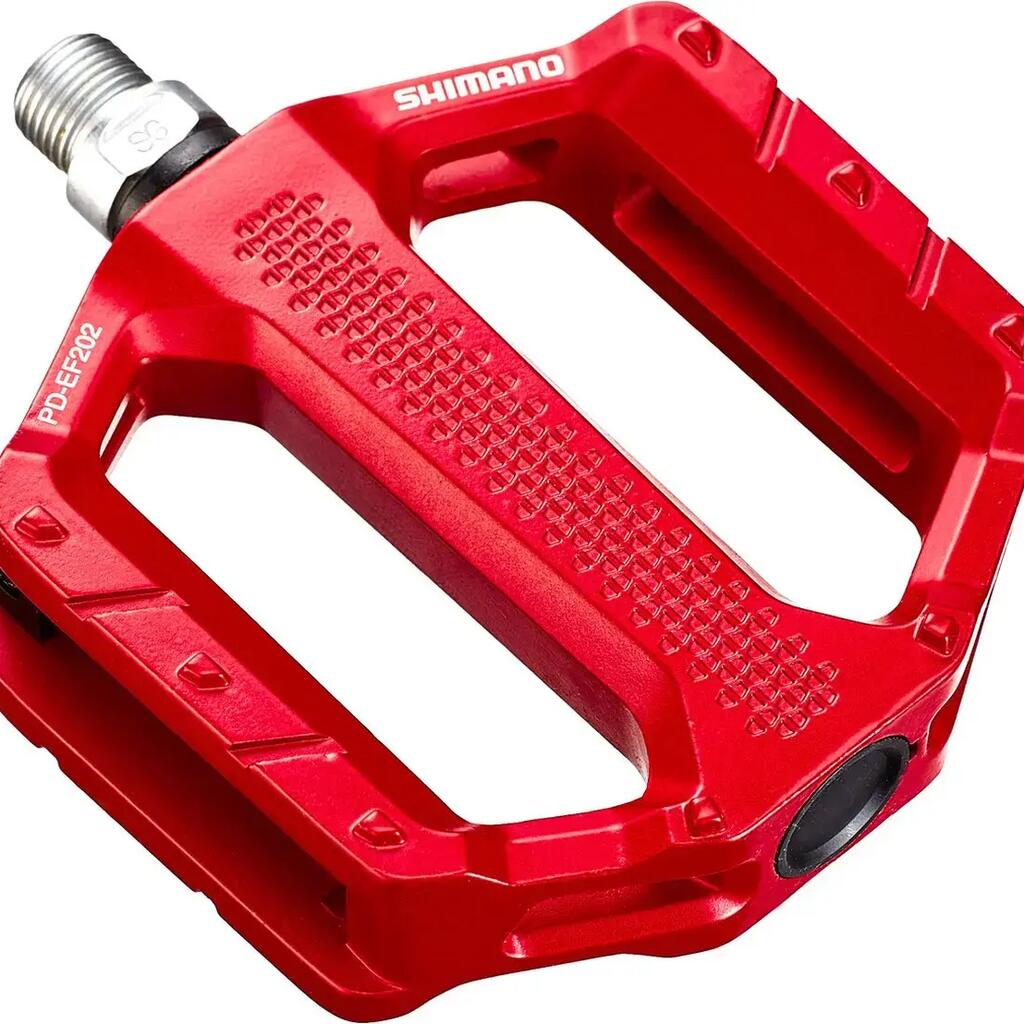 For everyday cycling, Shimano's PD-EF202 flat pedals feature a wide aluminum body and a textured surface for a stable pedaling platform