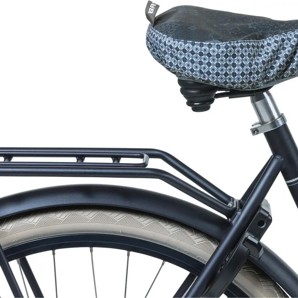 The model Basil Boheme Saddle Cover is a blue saddle cover with elegant Bohemian print and waterproof material