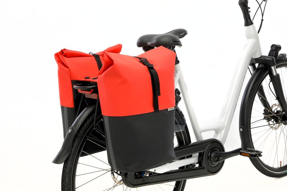 Energise your urban cycling with the double Newlooxs Nyborg saddlebag, the perfect companion for your city journeys.