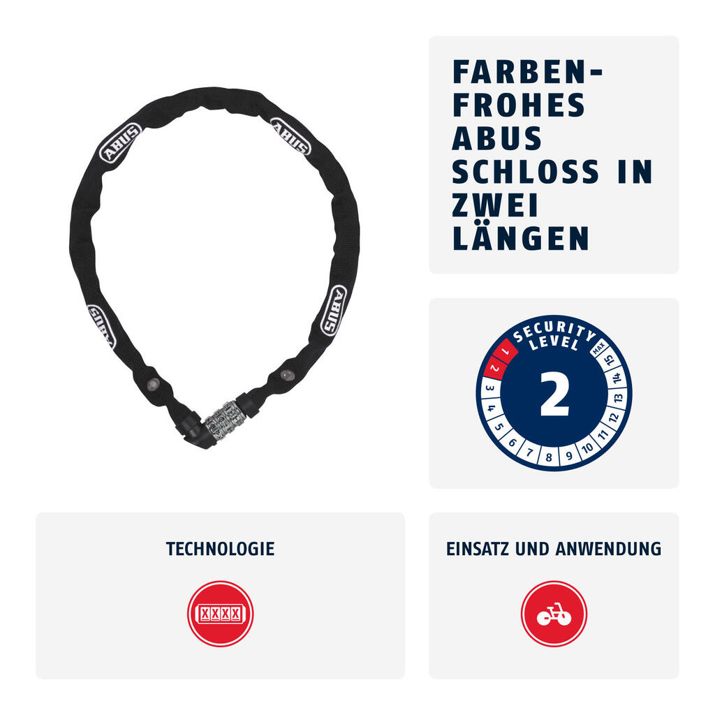 Secure your bike with the chain lock Abus 1200/110. Robust and easy to carry, ideal for entry-level and children's bikes. Security level Abus 2/15.