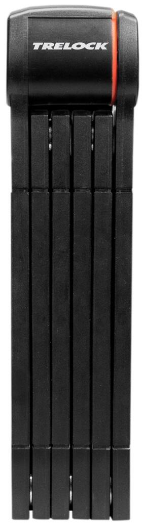 - SECURITY LEVEL 3/6 - KEY TYPE IN X - CORROSION PROTECTION - DUST CAP - SOFT TOUCH LINKS - ORIENTABLE BIKE SUPPORT - LENGTH: 100cm - 1000g Thanks to the IN-X® locking cylinder of the new FS 380 TRIGO®, the key can be inserted from both sides. The redesigned cylinder protection cap not only protects the locking cylinder but also makes locking and unlocking more convenient. The FS 380 TRIGO® is based on the new simplified design language of Trelock. All in black, the folding lock is even more stylish than before. The rubber-coated hardened steel links protect the bike not only against theft but also against scratches. Keywords: Folding board lock