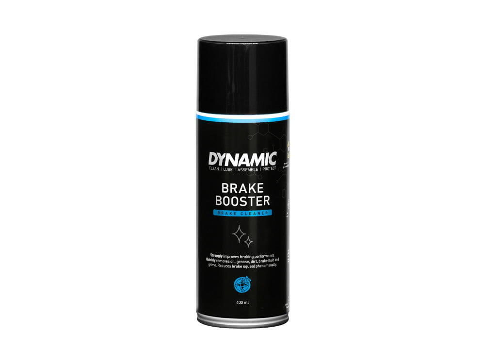 Boost your braking performance with Dynamic Brake Booster. This brake cleaner helps to dramatically reduce brake squeal and quickly removes dirt, grime, oil and other contaminants. Clean brakes and brake pads perform better and #lastlonger. For the best braking power, your disc brakes need to be free from contaminants. Brake Booster is a brake cleaner for your discs and rim brakes. It quickly removes dirt, grime, oil and other contaminants. The strong solvent removes even the most stubborn grime residues without harming the braking parts. The formula is safe to use on all braking components and materials like rubber, plastic, metal and carbon. The easy to use spray helps to apply the cleaner evenly on your brakes. Brake Booster dries rapidly and leave no residue. Brake Booster can be used on all braking components including disc brakes, brake pads and (aluminum) rim flanks. Shake the can well before use and spray directly on the area you are cleaning. You can also spray it on a clean cloth first. Wipe away any excess fluid and allow Brake Booster to evaporate before going for a ride.