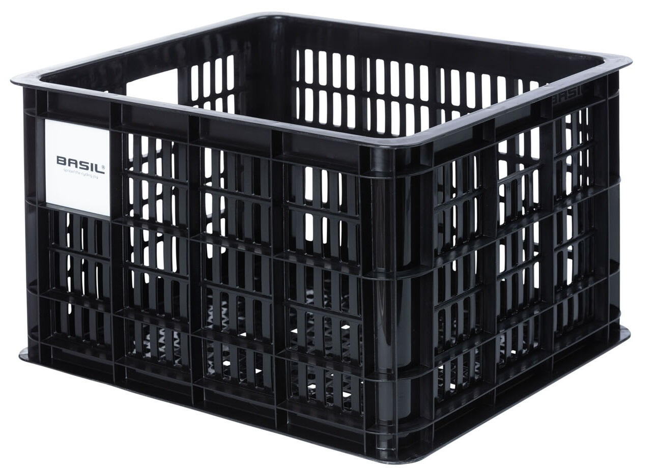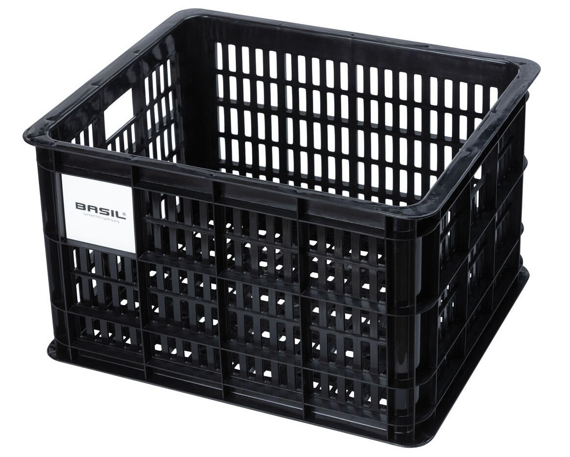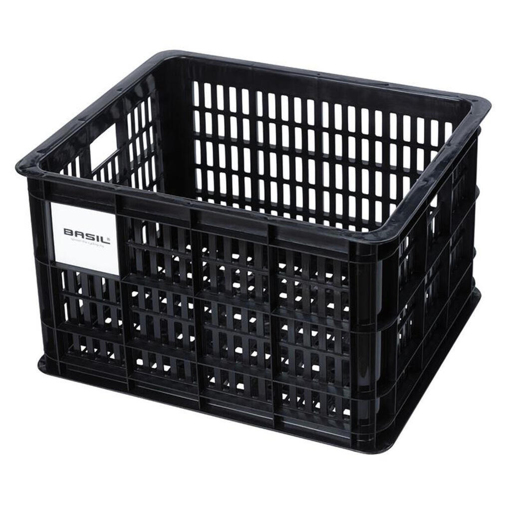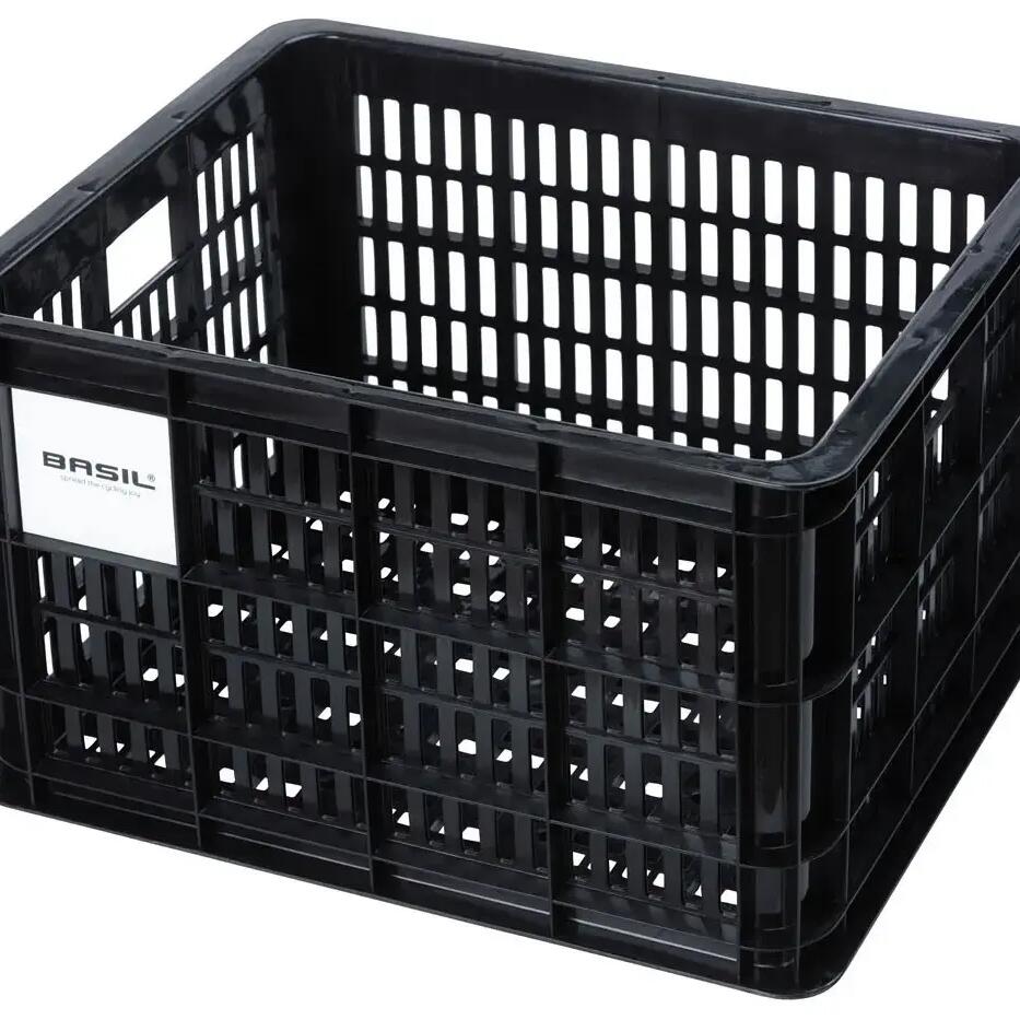 Discover the Basil Crate 34 x 40 x 25 cm plastic basket, the ideal companion for your bike with a 29.5-liter capacity.