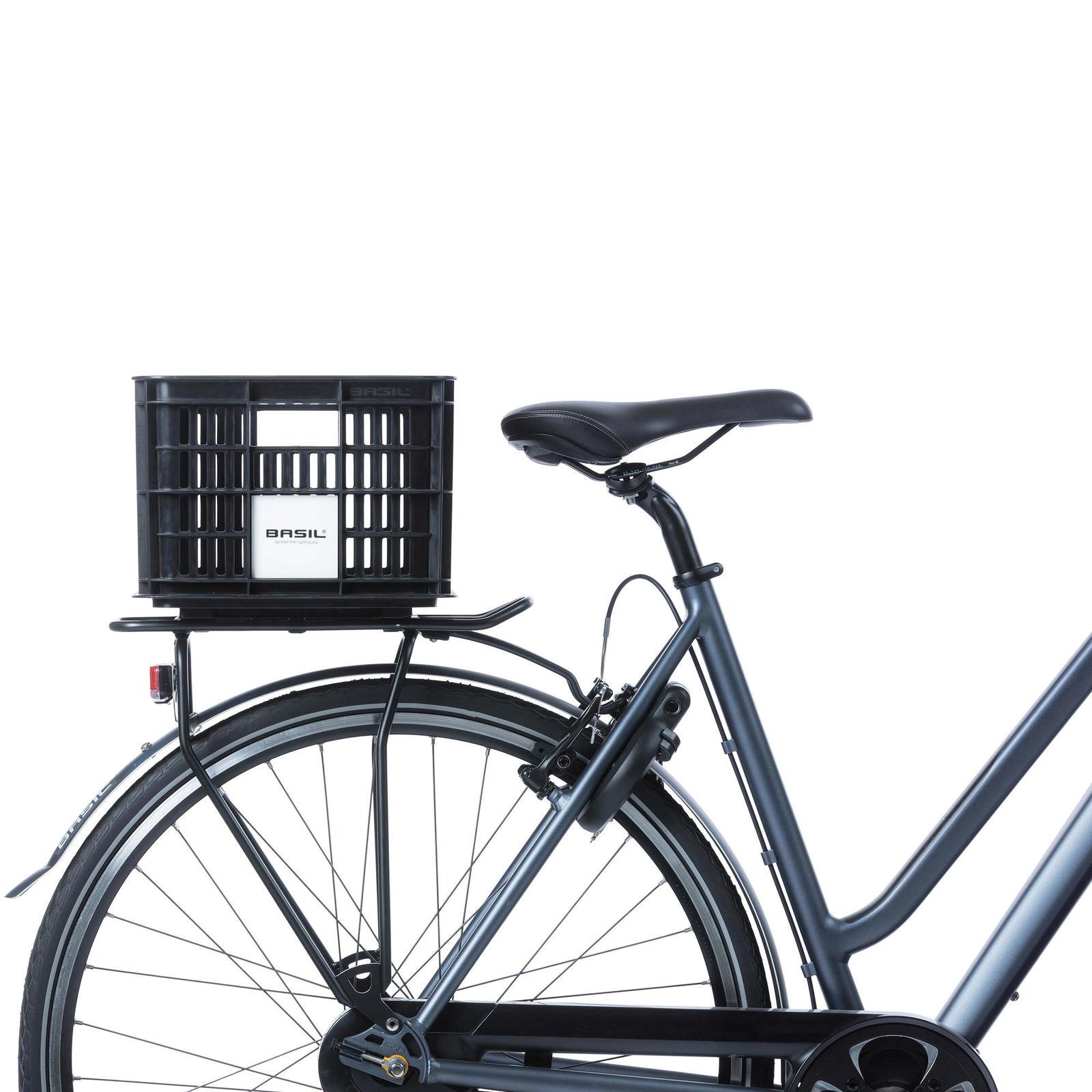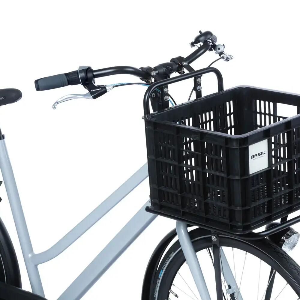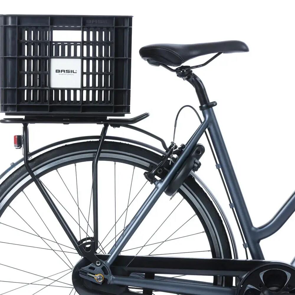 Discover the Basil Crate 34 x 40 x 25 cm plastic basket, the ideal companion for your bike with a 29.5-liter capacity.