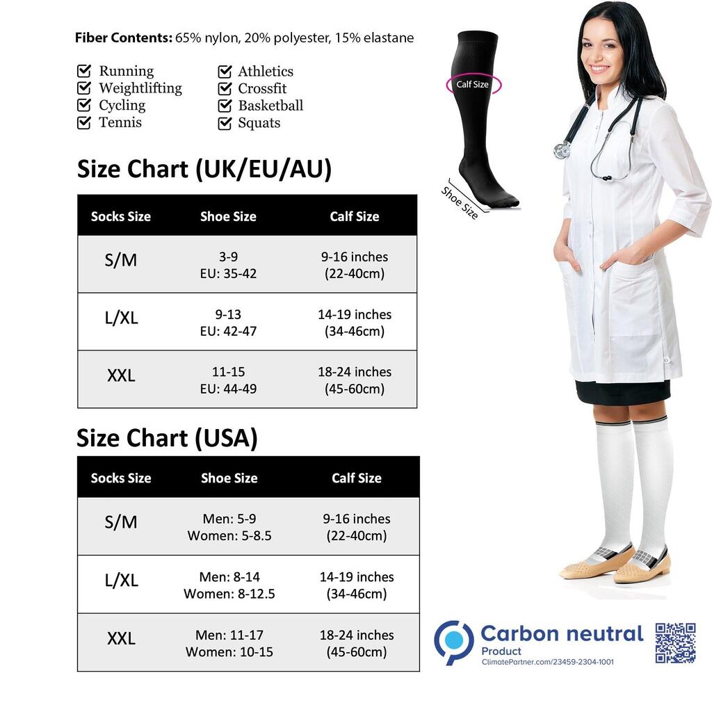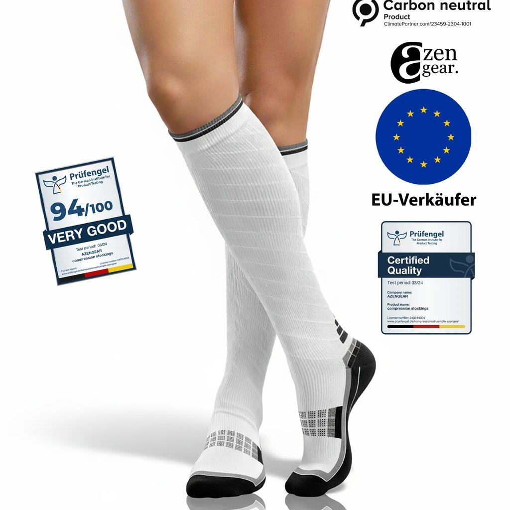 Experience the power and comfort of aZengear Calf Compression Socks for Men and Women! Anti DVT Air Flying Knee-High Flight Travel Stockings for Varicose Veins, Running, Shin Splints.