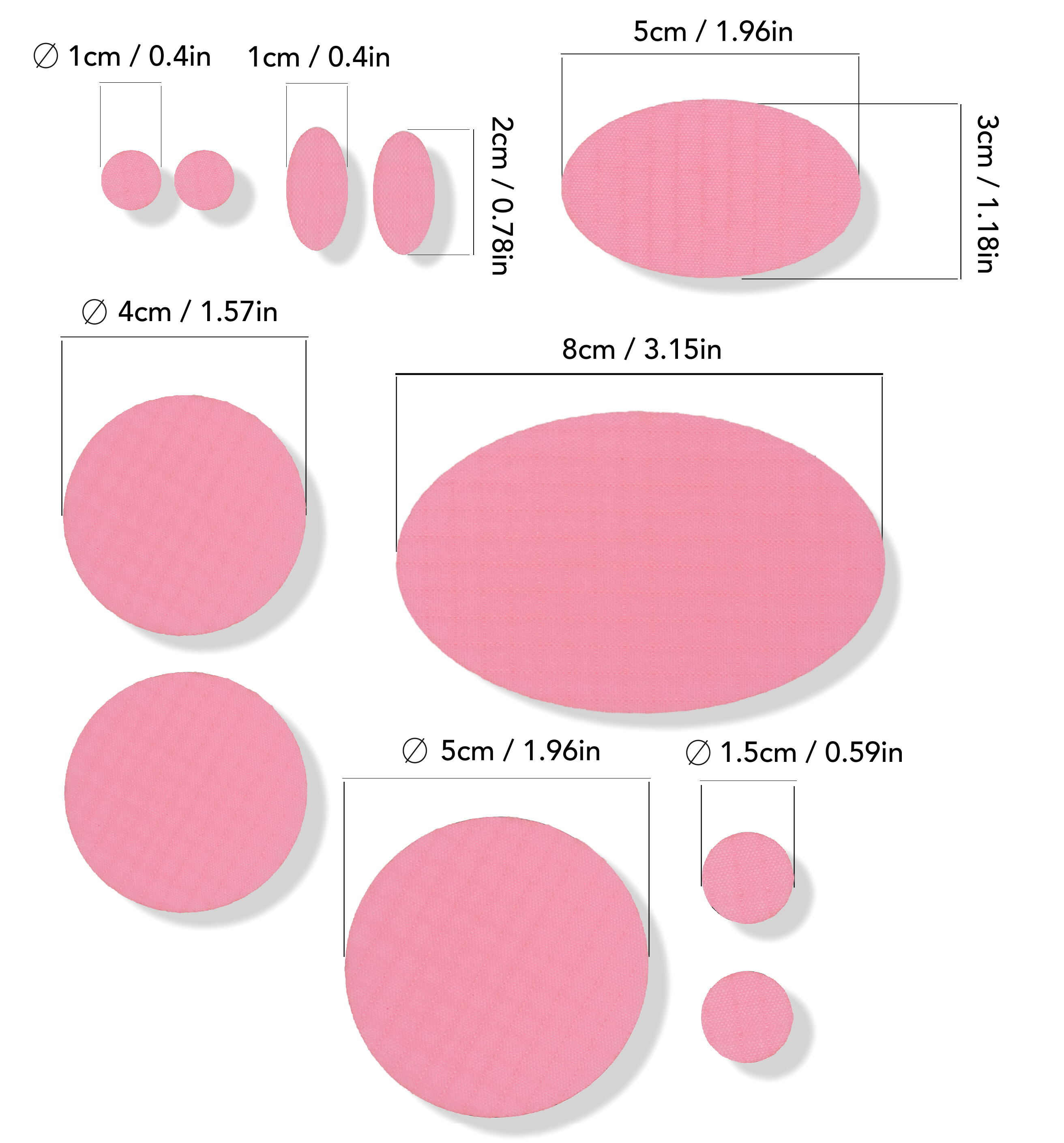 Each mending set includes 11 pre-cut patches in various shapes and sizes, ensuring you have the perfect match for any repair job. We've thoughtfully included 1 oval patch measuring 5x8cm, 1 oval patch measuring 3x5cm, 2 sets of oval patches measuring 1x2cm each, 1 circular patch with a 5cm diameter, 2 circular patches with a 4cm diameter, and 2 sets of circular patches measuring 1.5cm and 1cm respectively. No matter the size or shape of the tear, we've got you covered!