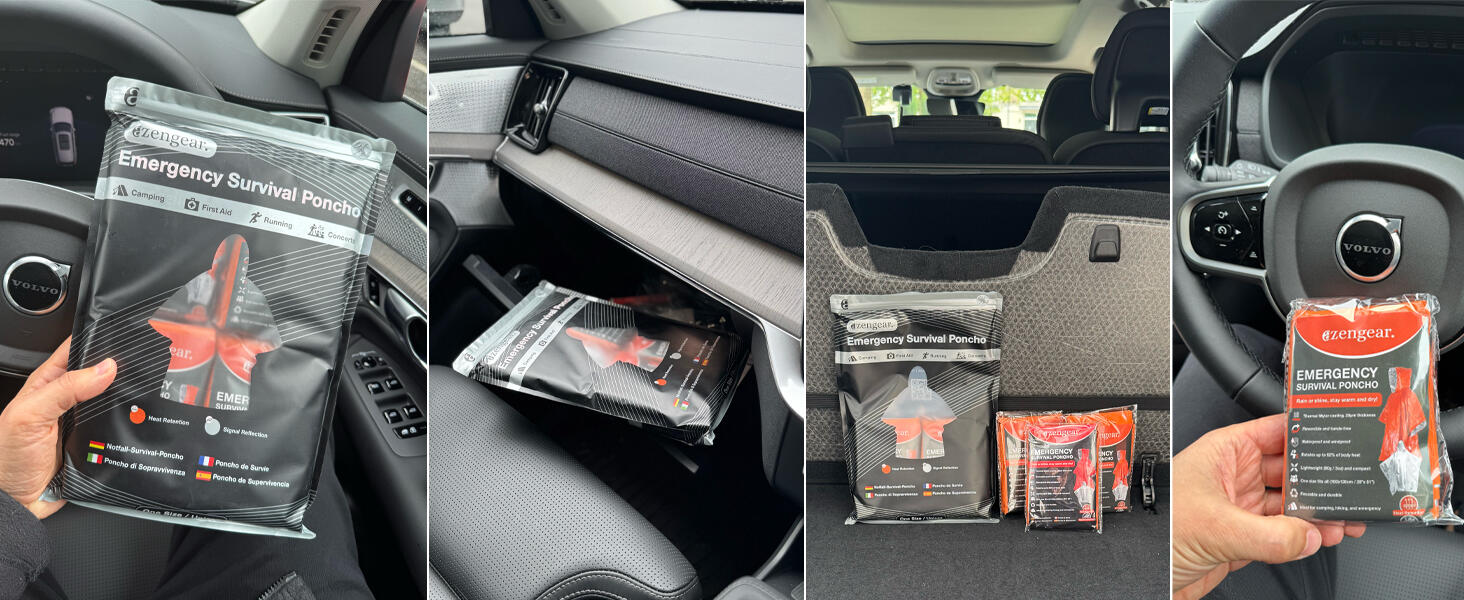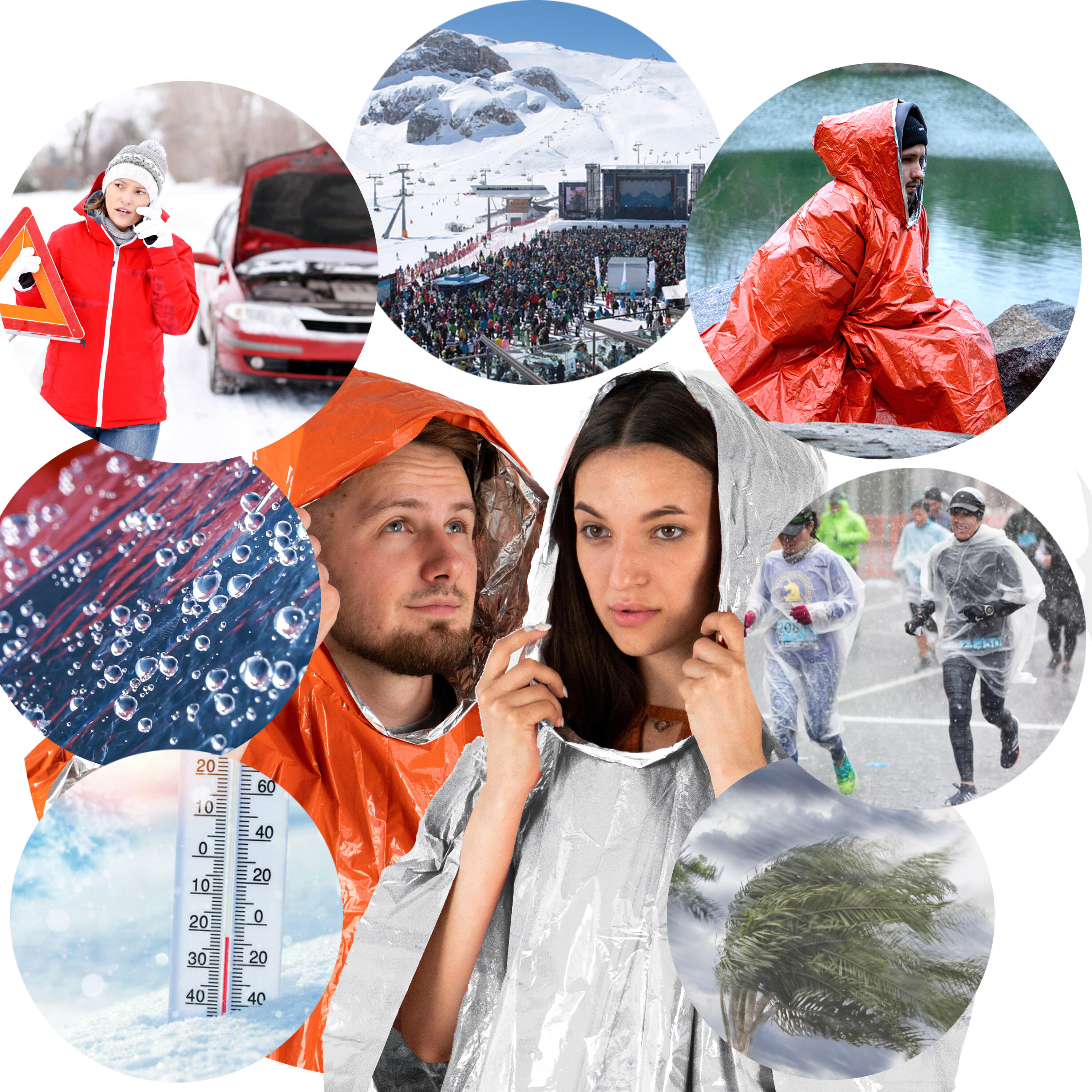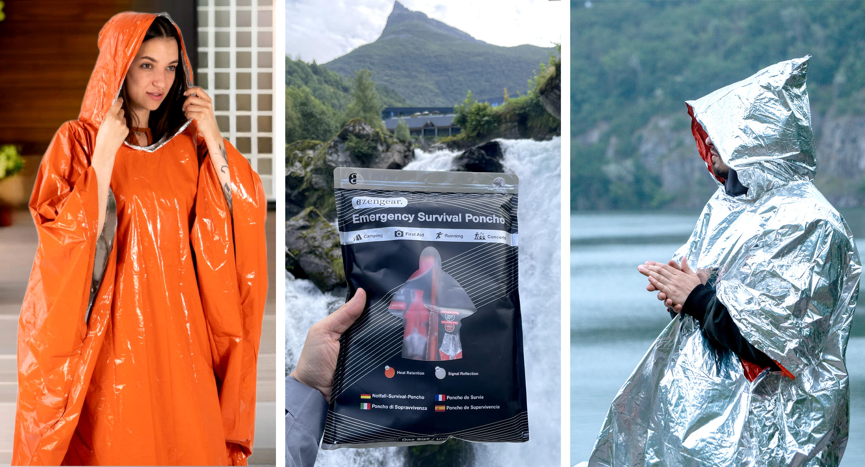 aZengear Emergency Survival Poncho (4pc) Thermal Mylar Foil Coating Blanket for Heat Retention and Rain | Reversible with Hood | Waterproof, Windproof, Hands-free, Outdoor Kit (Orange)