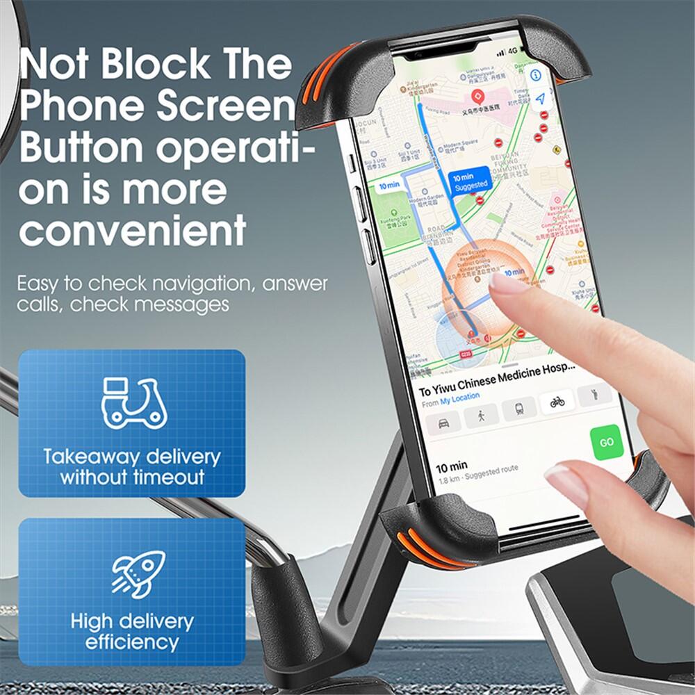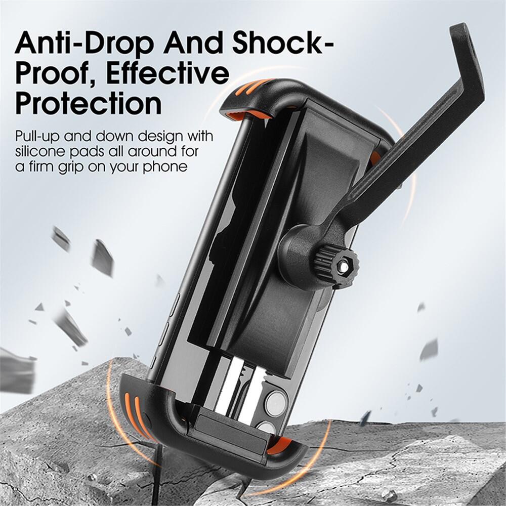 Bicycle, scooter, and motorcycle handlebar phone mount with attachment. Versatile and practical, it adapts to various types of handlebars and vehicles.