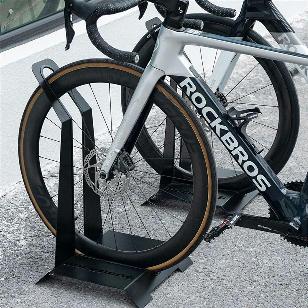 Carbon steel insert-type bicycle stand for display. Elegant and stable, ideal for showcasing your bicycle professionally.