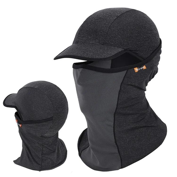 WEST BIKING 3-in-1 Balaclava for Summer – UV Protection, Breathable, and Cooling Face summer with complete peace of mind with the WEST BIKING 3-in-1 balaclava, the ultimate multifunctional accessory for your outdoor activities. Designed to offer complete protection and optimal comfort, it combines a cap, a face mask, and a neck warmer in one product, ideal for hot, sunny days. Key Features: Innovative 3-in-1 Design: This ingenious garment integrates a cap, a face mask, and a neck warmer. The brim of the cap provides effective shade and protects your eyes from direct sunlight, ensuring better visibility. Optimal Cooling: Made from stretchy ice silk fabric, it keeps you cool even in hot weather, ensuring a pleasant experience without overheating. Advanced Protection and Breathability: The mesh fabric at the front of this full-face mask effectively blocks the sun's UV rays. It also filters out most dust particles and airborne pollutants, while offering superior heat dissipation for easy breathing. Quick-Drying and Absolute Comfort: This fabric quickly absorbs perspiration and dries in a flash, making it a perfect choice for all your outdoor activities, including wearing under a helmet for motorcycling, cycling, running, hiking, fishing, hunting, and more. Exceptional Elasticity: Its high elasticity ensures complete freedom of movement, making this sun mask suitable for most people and providing reliable sun protection. Technical Specifications: Material: Ice Silk Head Circumference: < 65 cm The WEST BIKING 3-in-1 balaclava is the essential accessory to stay protected, cool, and comfortable during all your summer outdoor adventures.