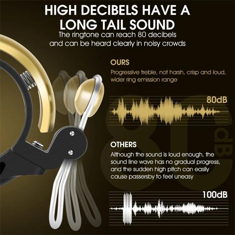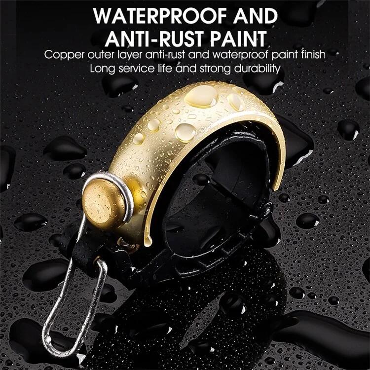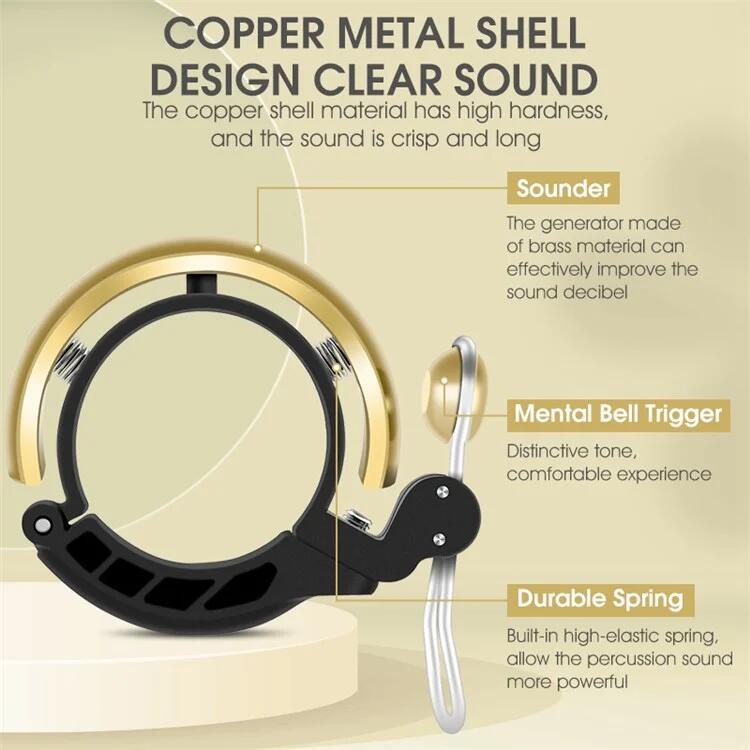 This mini bicycle bell stands out thanks to its compact design and elegant gold-colored copper casing.