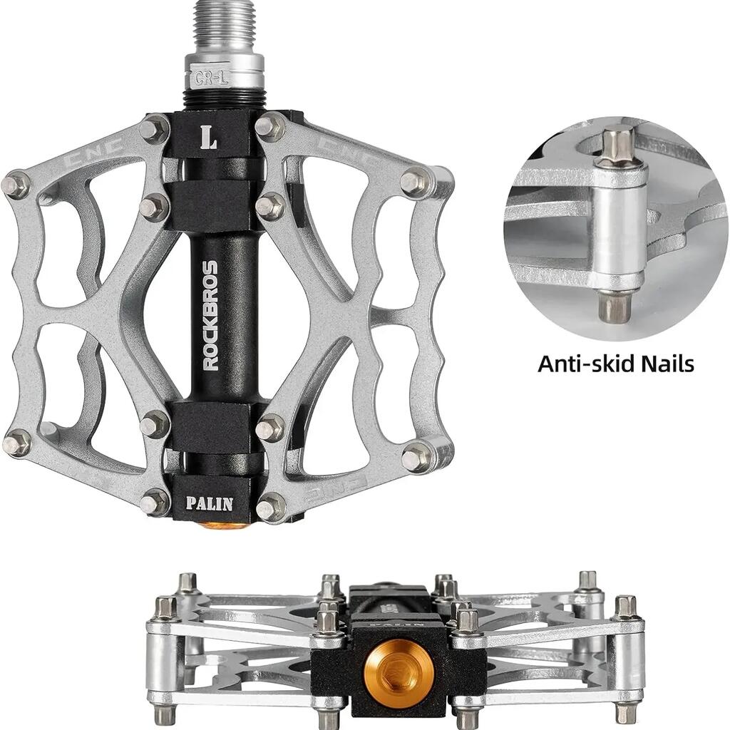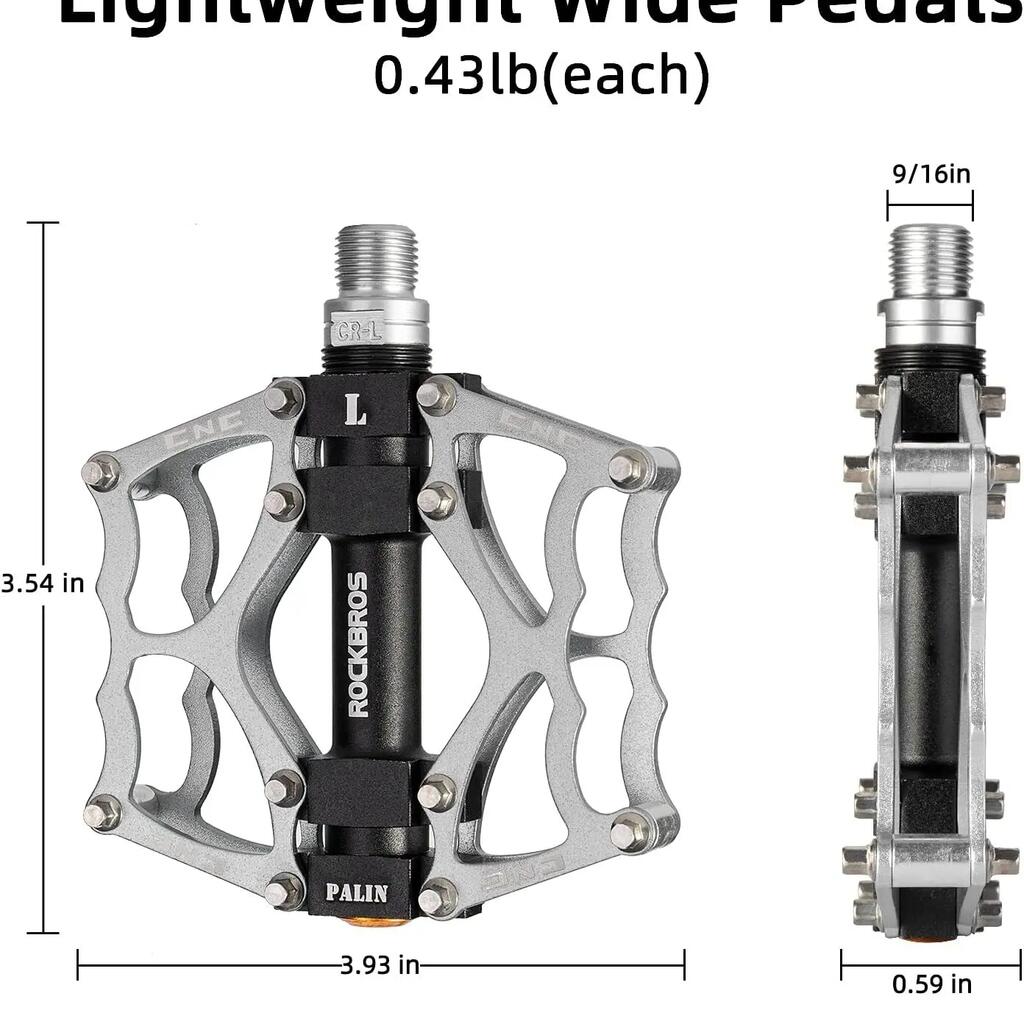 Optimize every pedal stroke with ROCKBROS flat pedals made of ultralight aluminum alloy, featuring sealed bearings for maximum smoothness and durability.