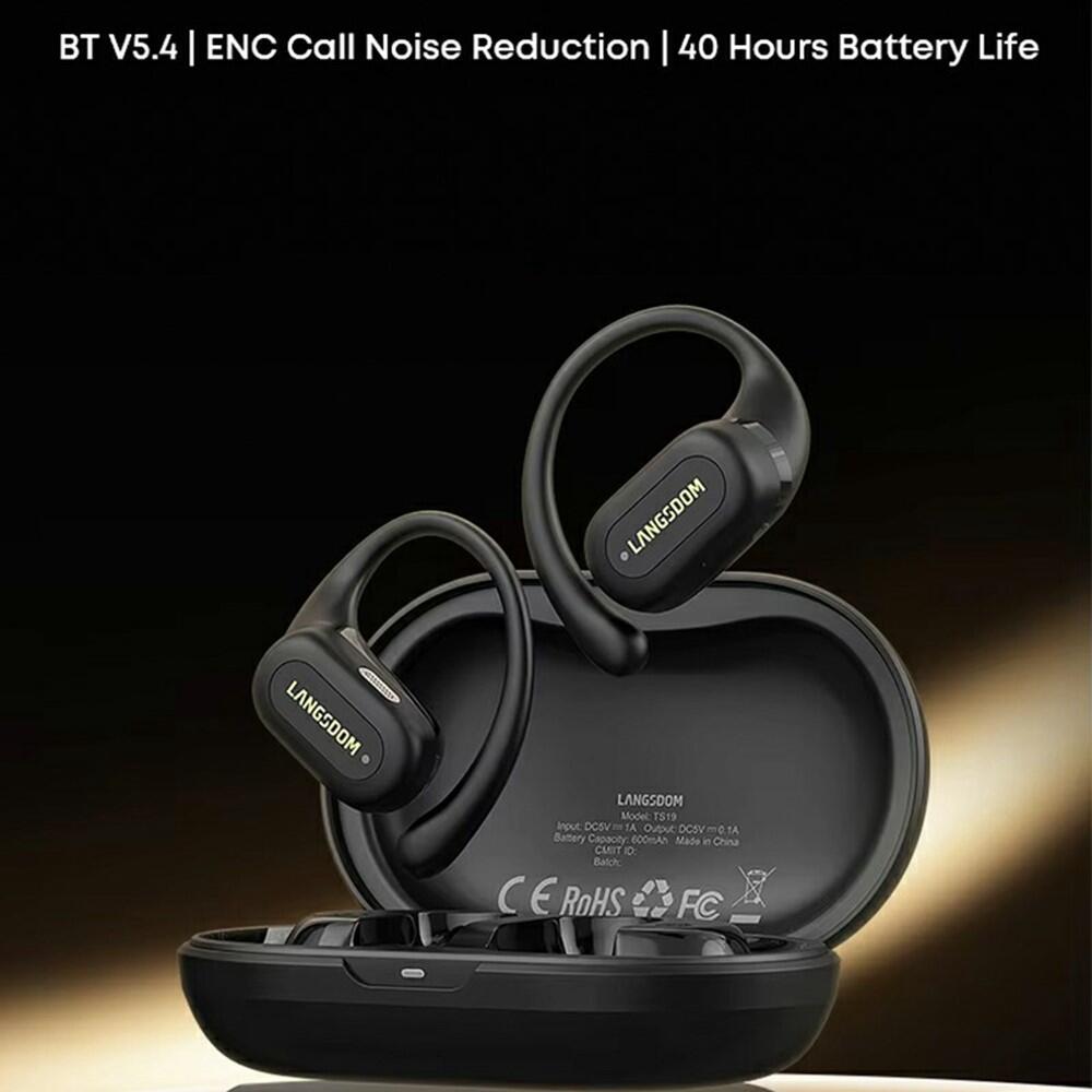 LANGSDOM TS19 Wireless Sports Earbuds with Ear Hooks, Waterproof (Black)