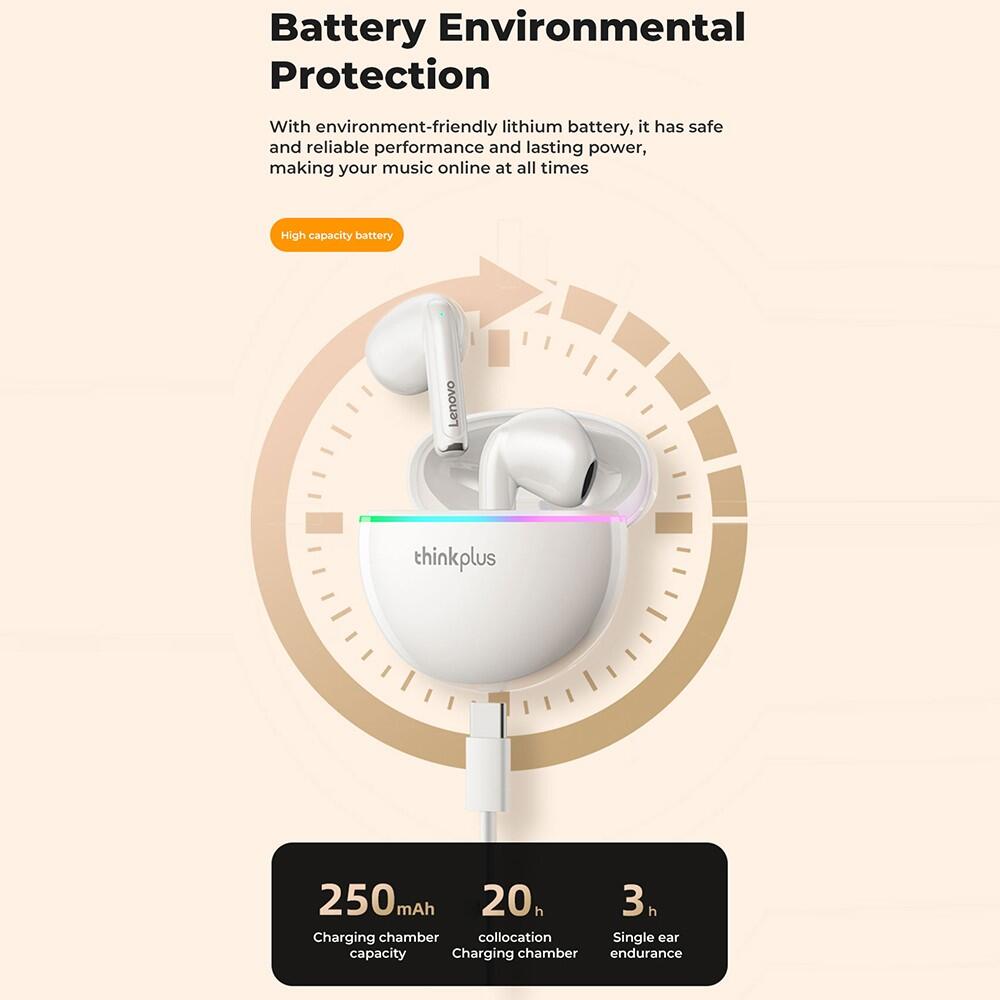 LENOVO Thinkplus XT97 White: Wireless TWS Stereo HiFi Sound, Bluetooth 5.2. Enjoy clear HD calls and immersive music with these stylish and high-performance earbuds.