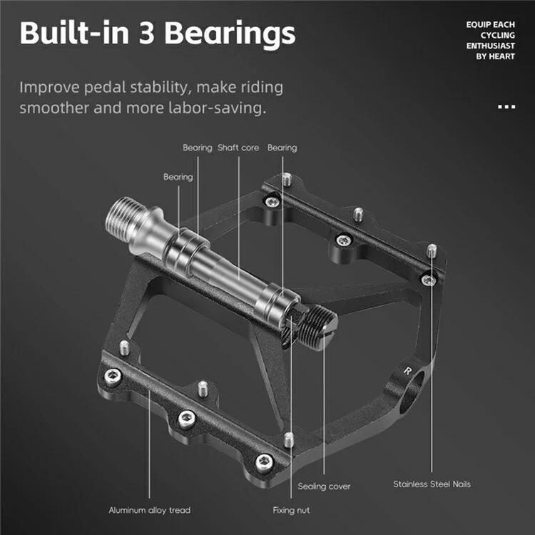 Lightweight Aluminum Alloy Bike Pedals with 3 Bearings - Black
