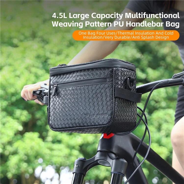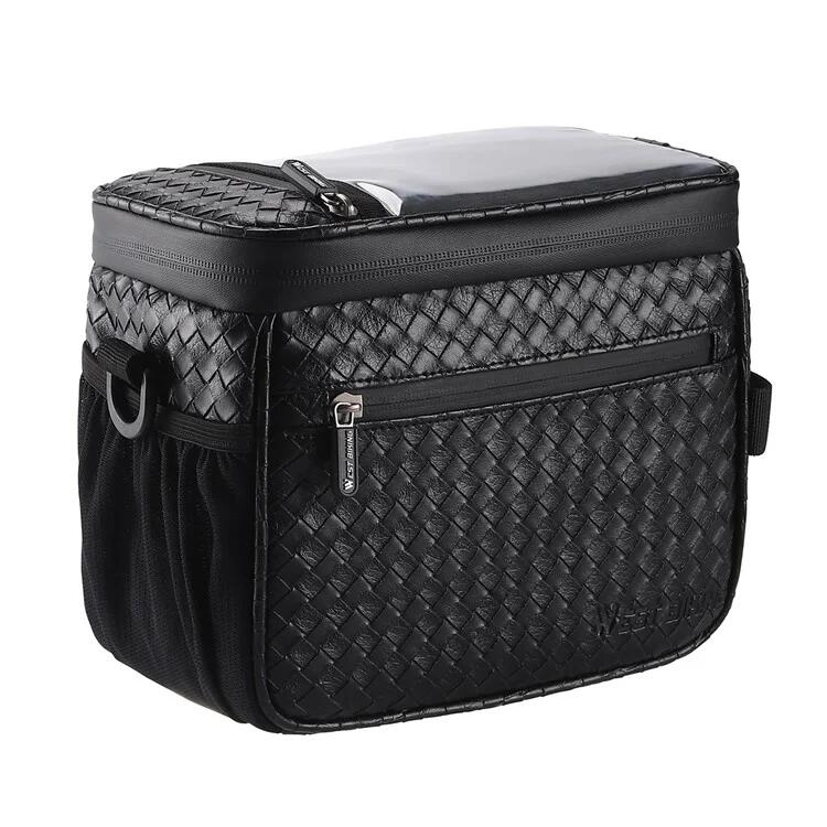PU Leather Bike Handlebar Insulated Bag with Touchscreen