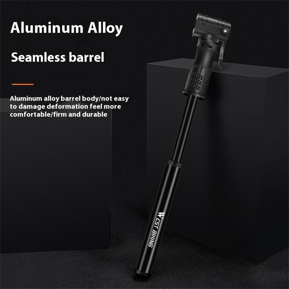 Portable mini bike pump with flexible aluminum hose. Enjoy convenient and ergonomic inflation even on the go.